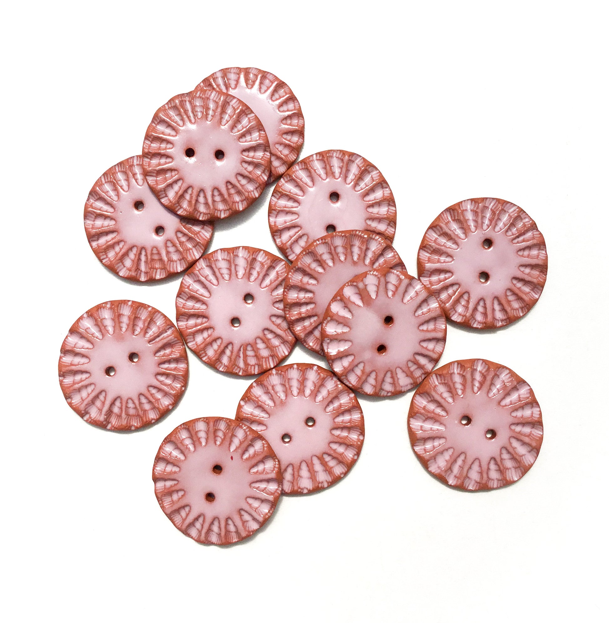Scalloped Pink Ceramic Buttons - 1-3/16"