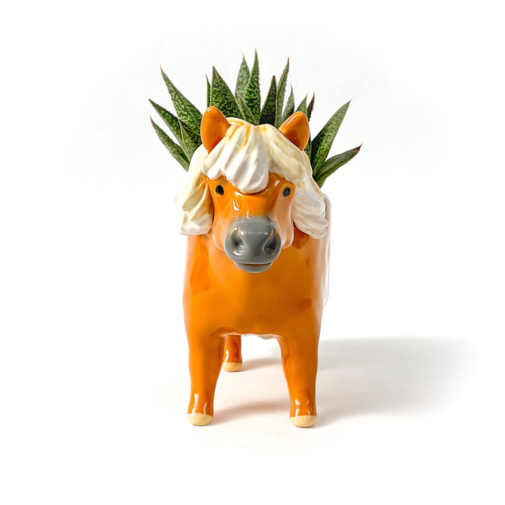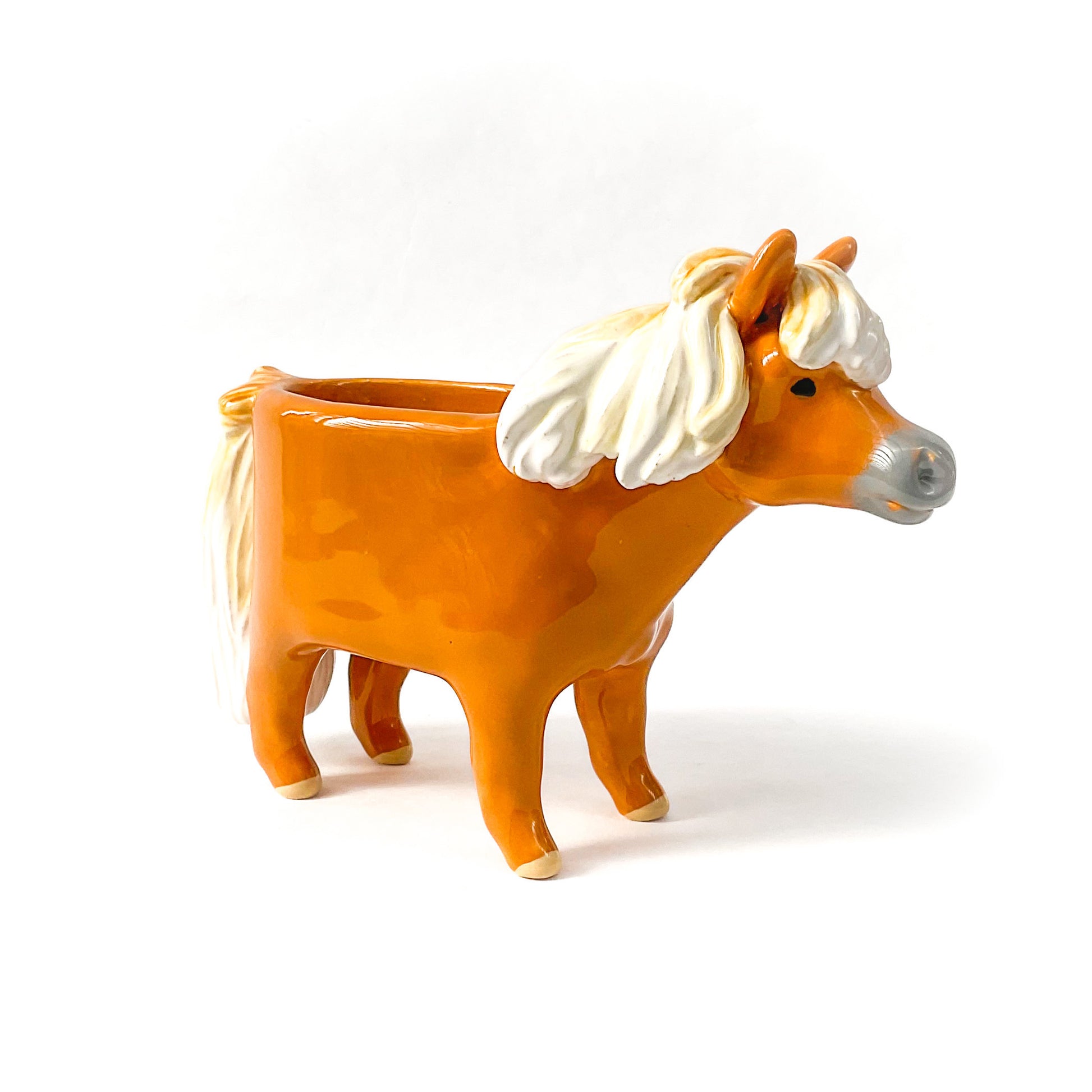 A ceramic pony planter to pot up your favorite plant or use as a dish.