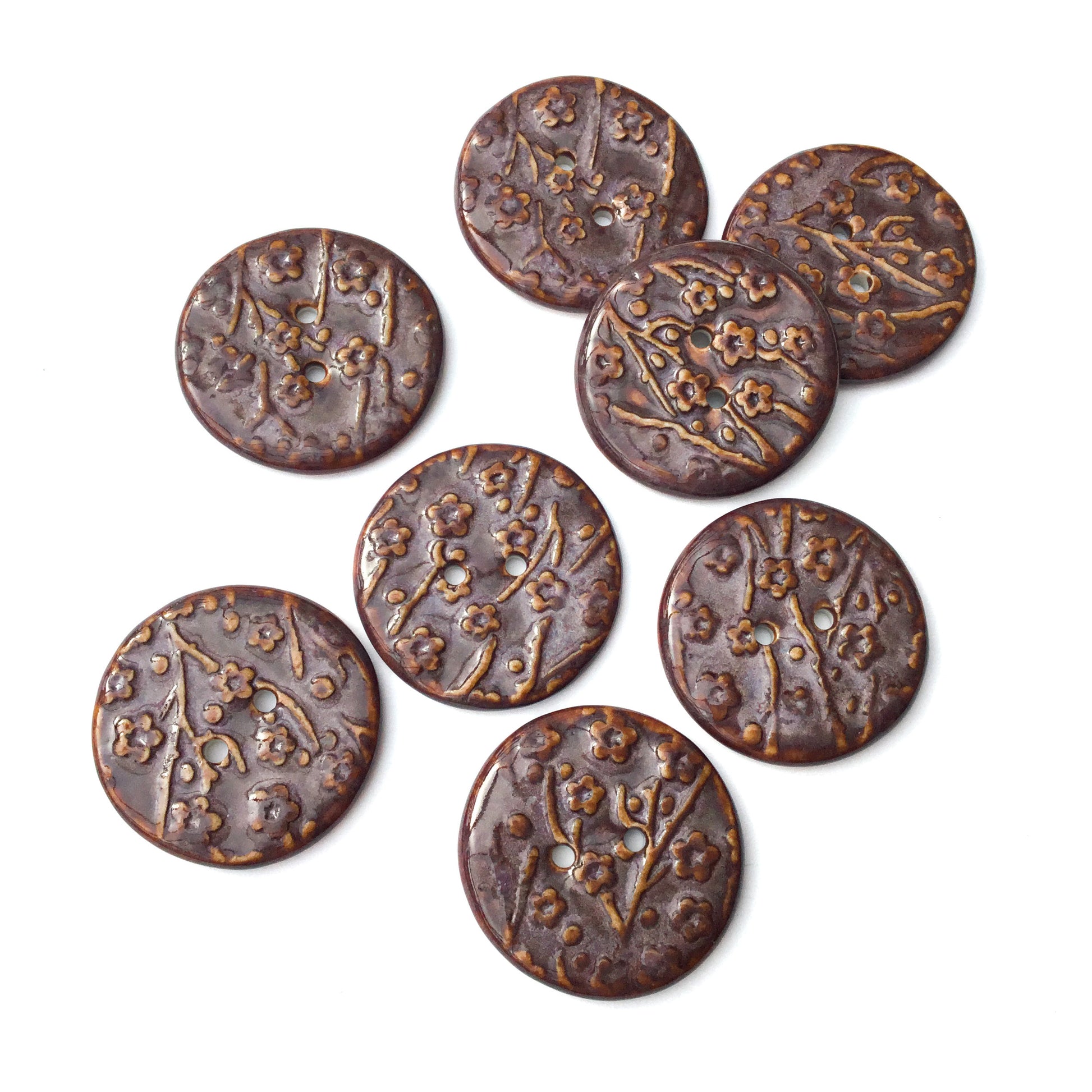 ‘Smokey Merlot’ Plum Blossom Porcelain Button 1"