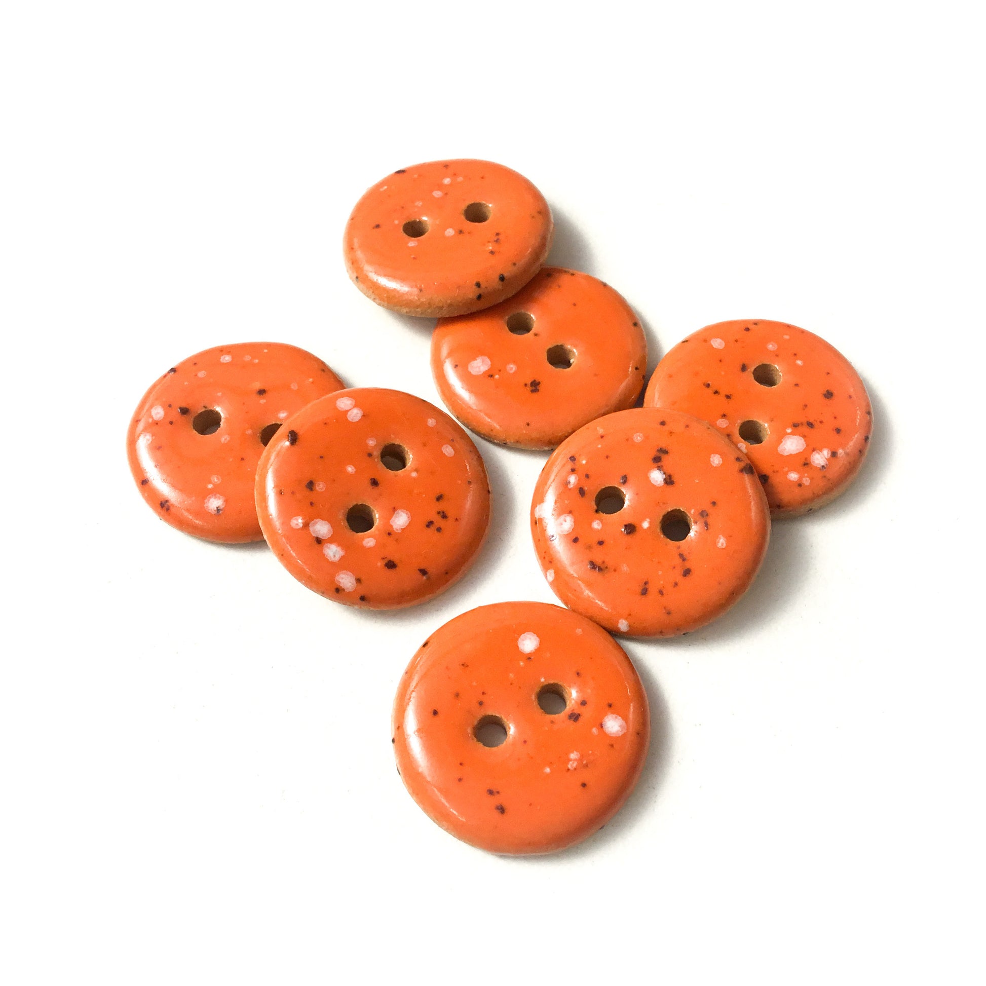 Speckled Deep Orange Ceramic Buttons - Round Ceramic Buttons - 3/4" - 7 Pack