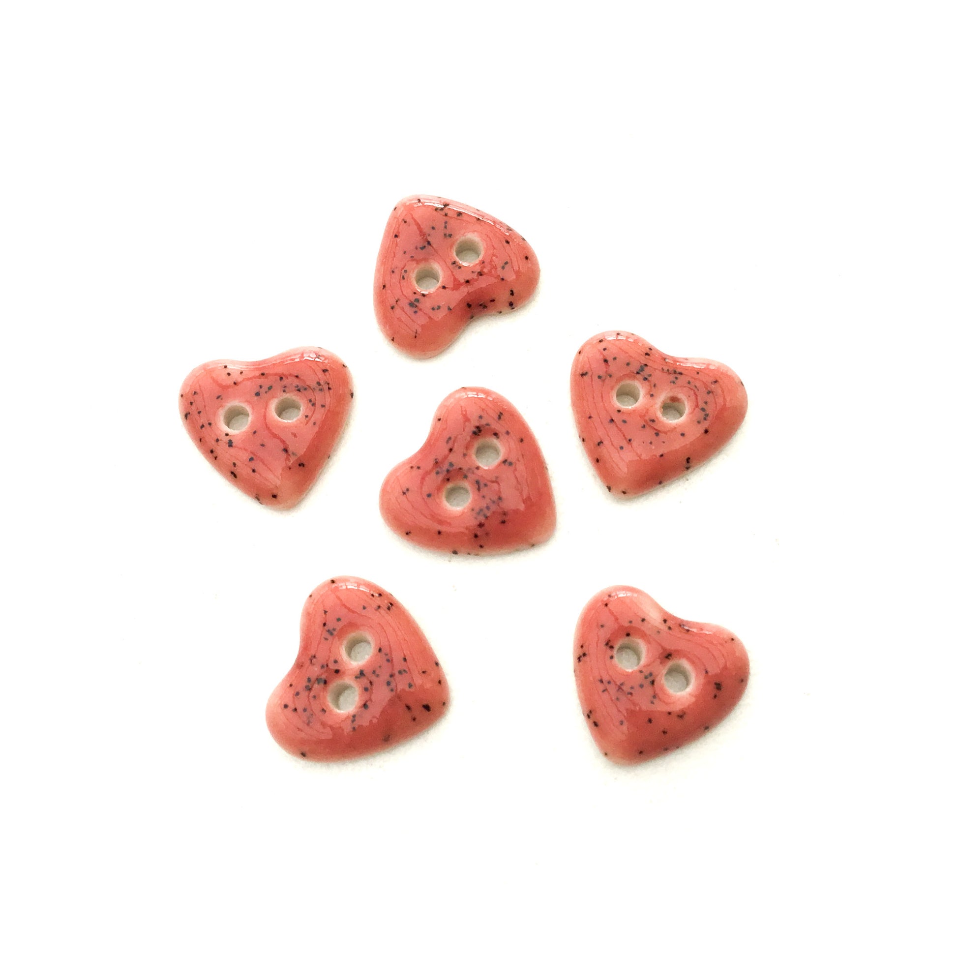 Speckled Dusty Rose Porcelain Heart Buttons 9/16"