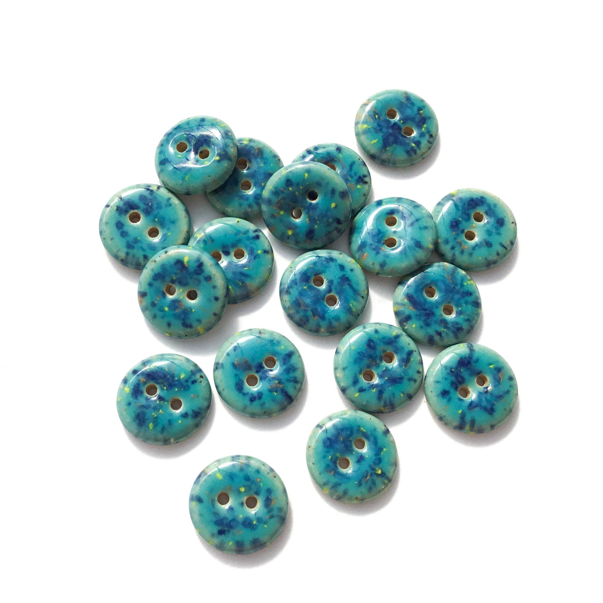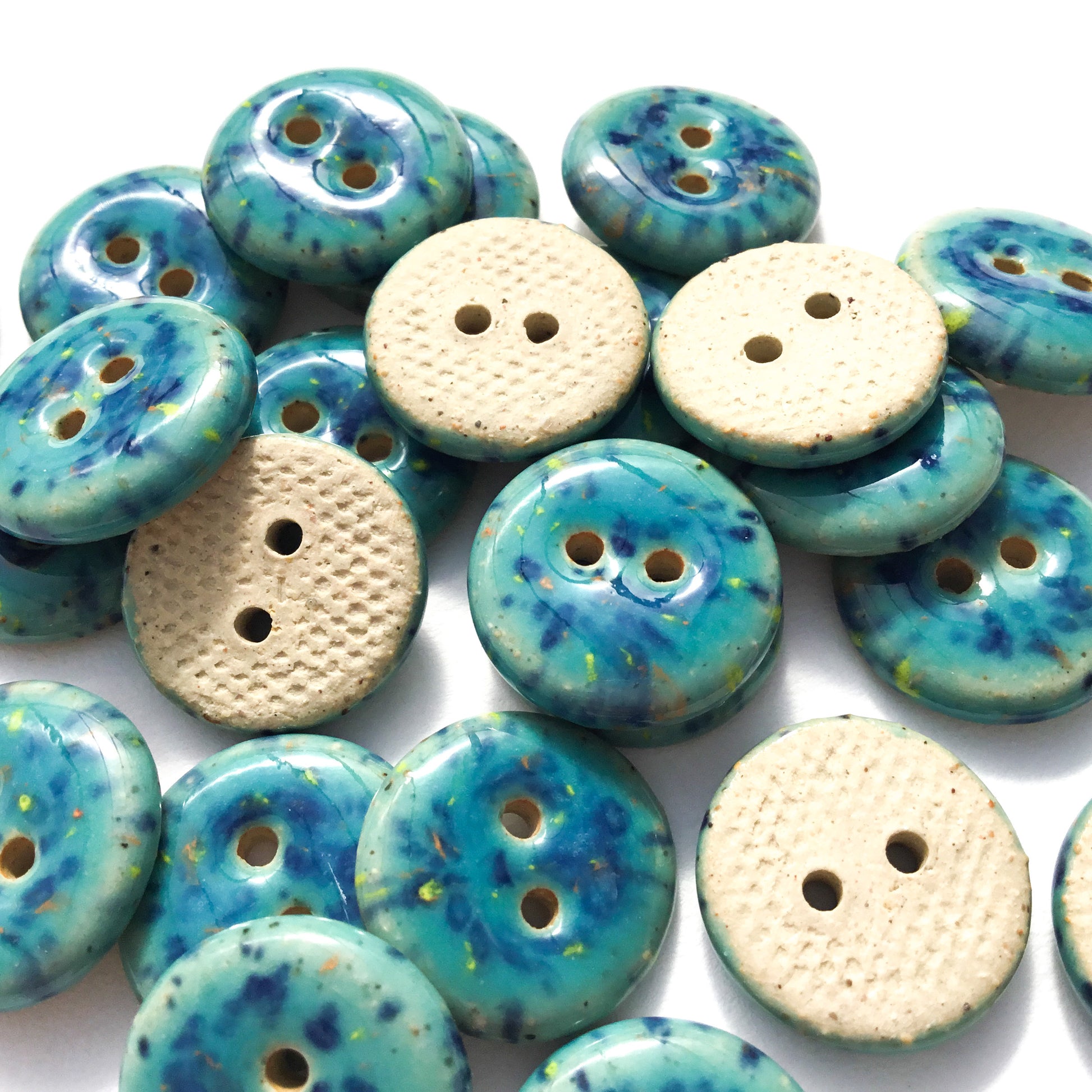 These stoneware buttons have character with their multicolored glaze in two-toned blue and small flecks of yellow and orange. They'd make a beautiful addition to your handwork!