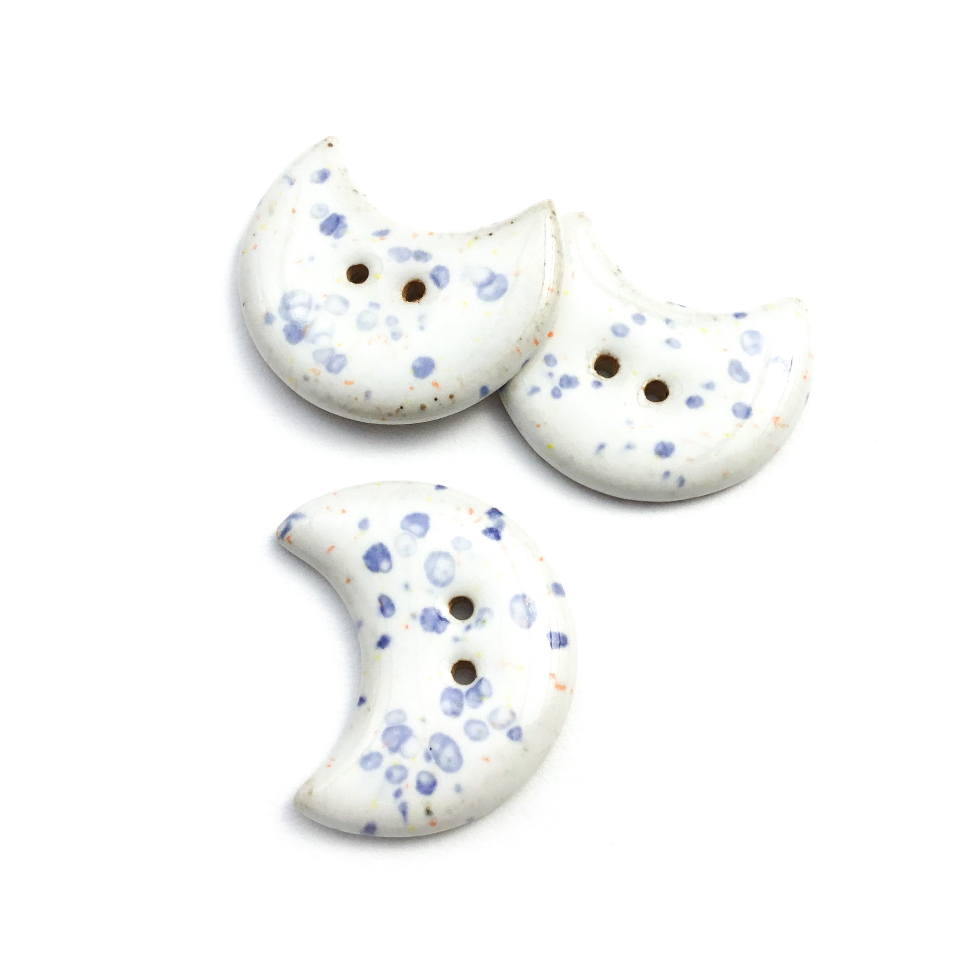 Speckled White Moon Crescent Stoneware Buttons 1-1/4"