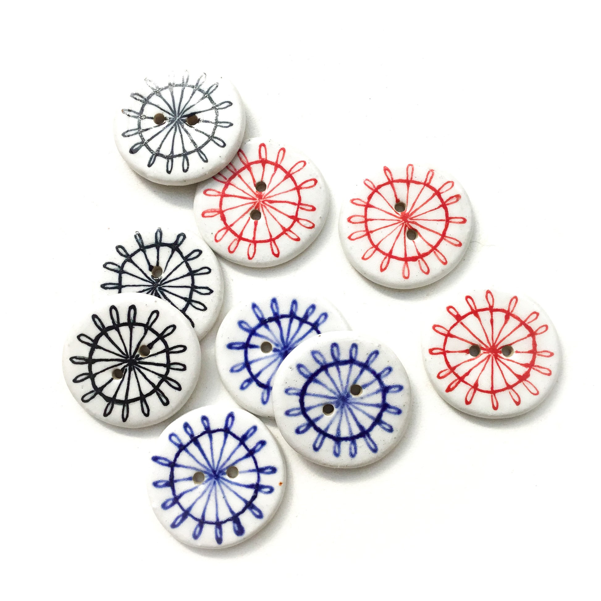 These one-of-a-kind ceramic buttons are hand painted with a simple and fun pattern. They'll add a lovely addition to your handwork!