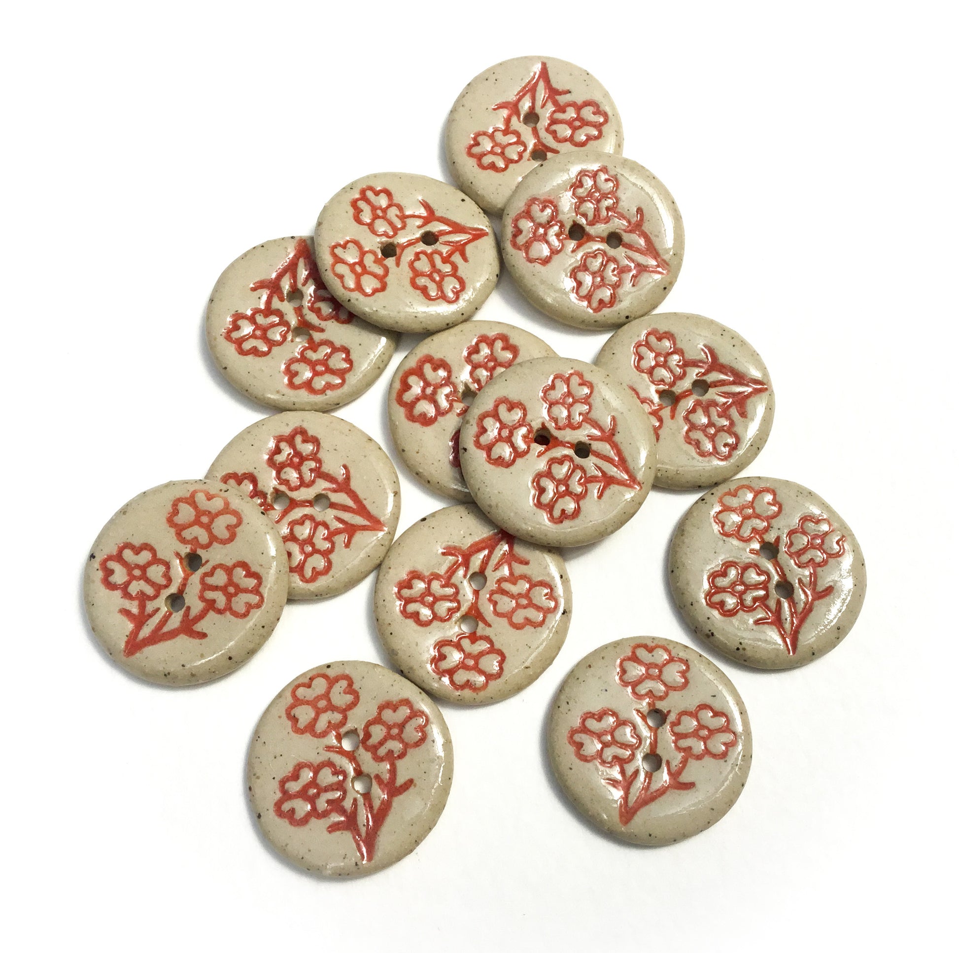 Add a handmade touch to your project with these sweet hand stamped stoneware buttons. These flowers remind us of the dainty Spring Beauties we see in late March on our farm. They're perfect for giving a unique look to any creation.