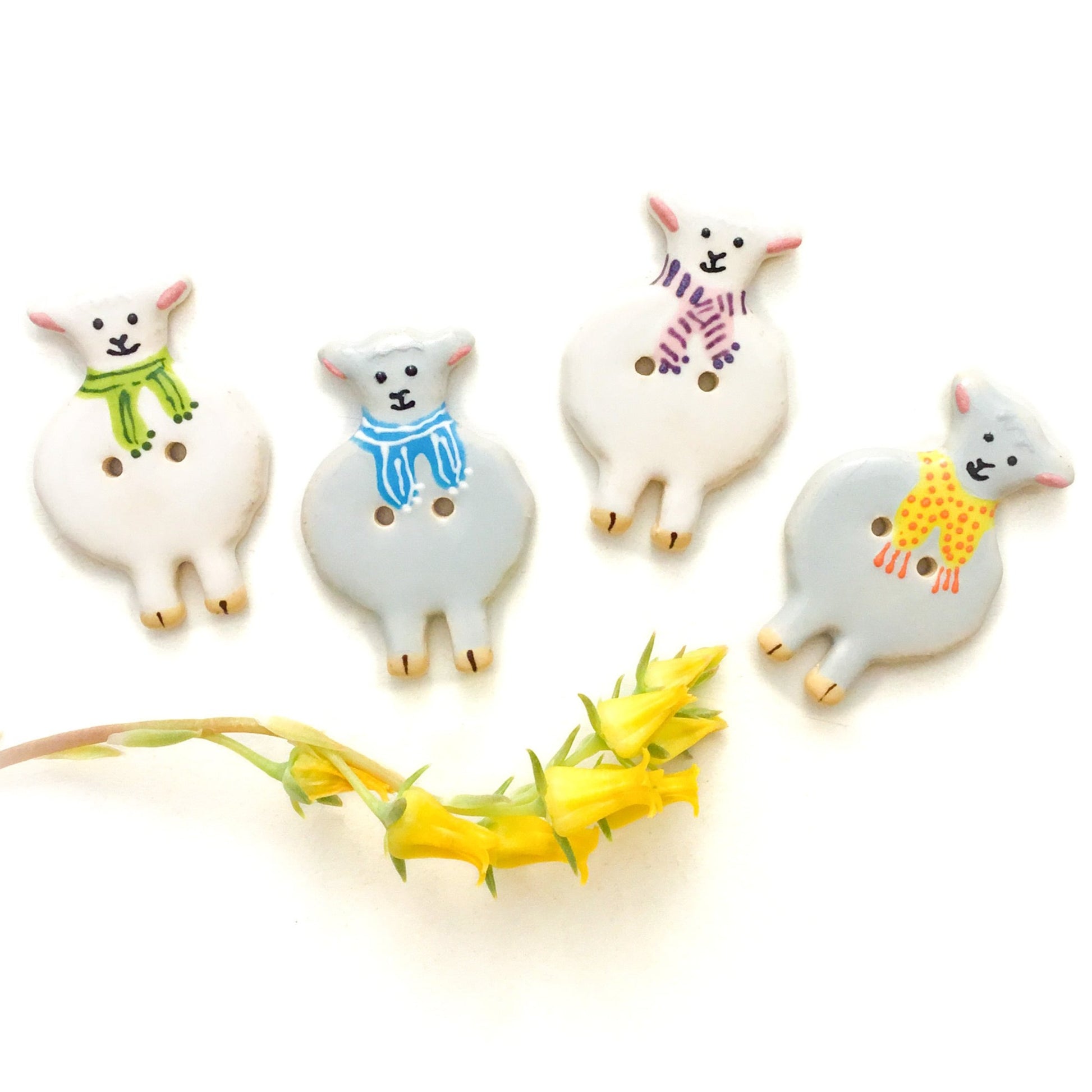 Our Spring Lambs Button Collection brings you these cute sheep in scarves. Great for adding a fun accent to any project!
