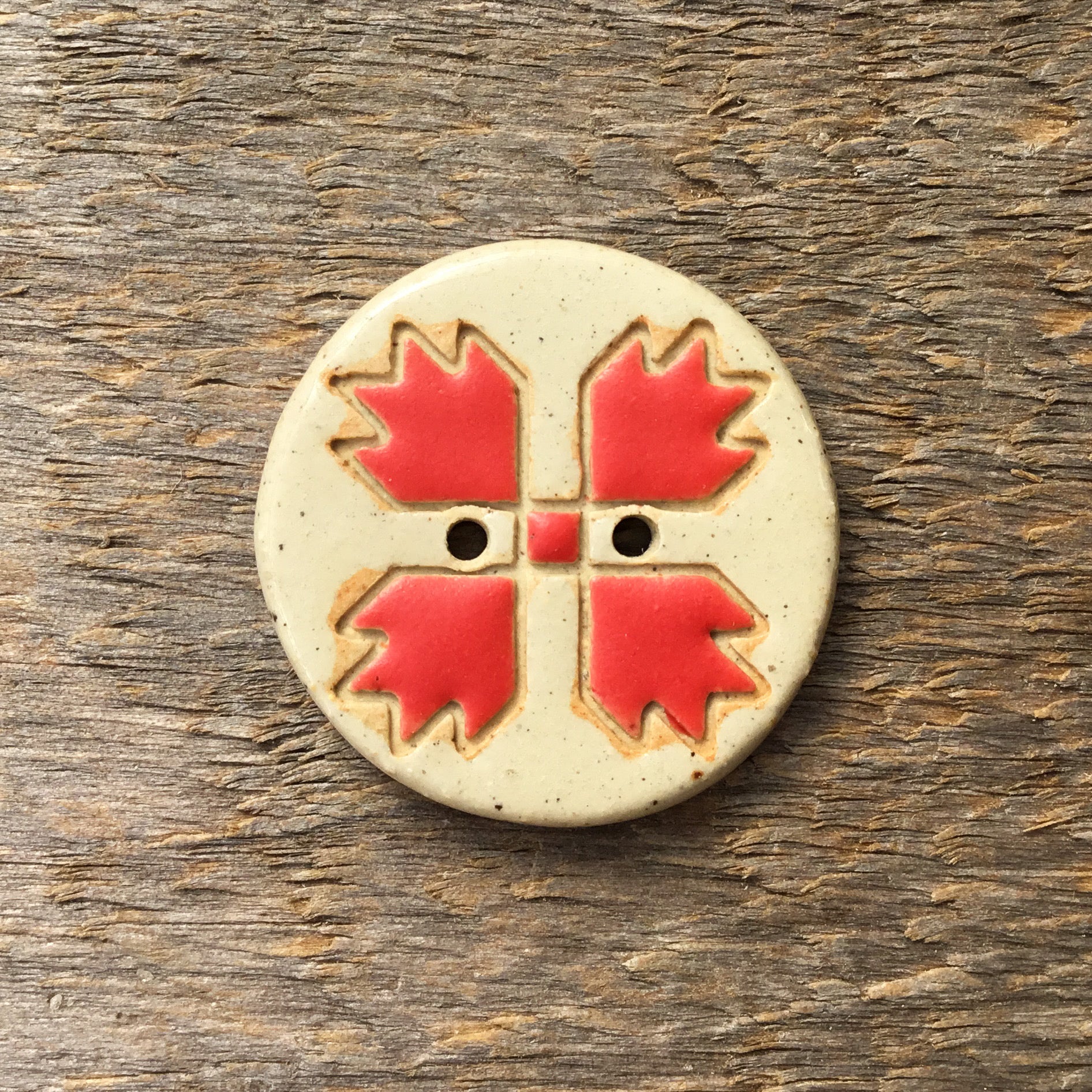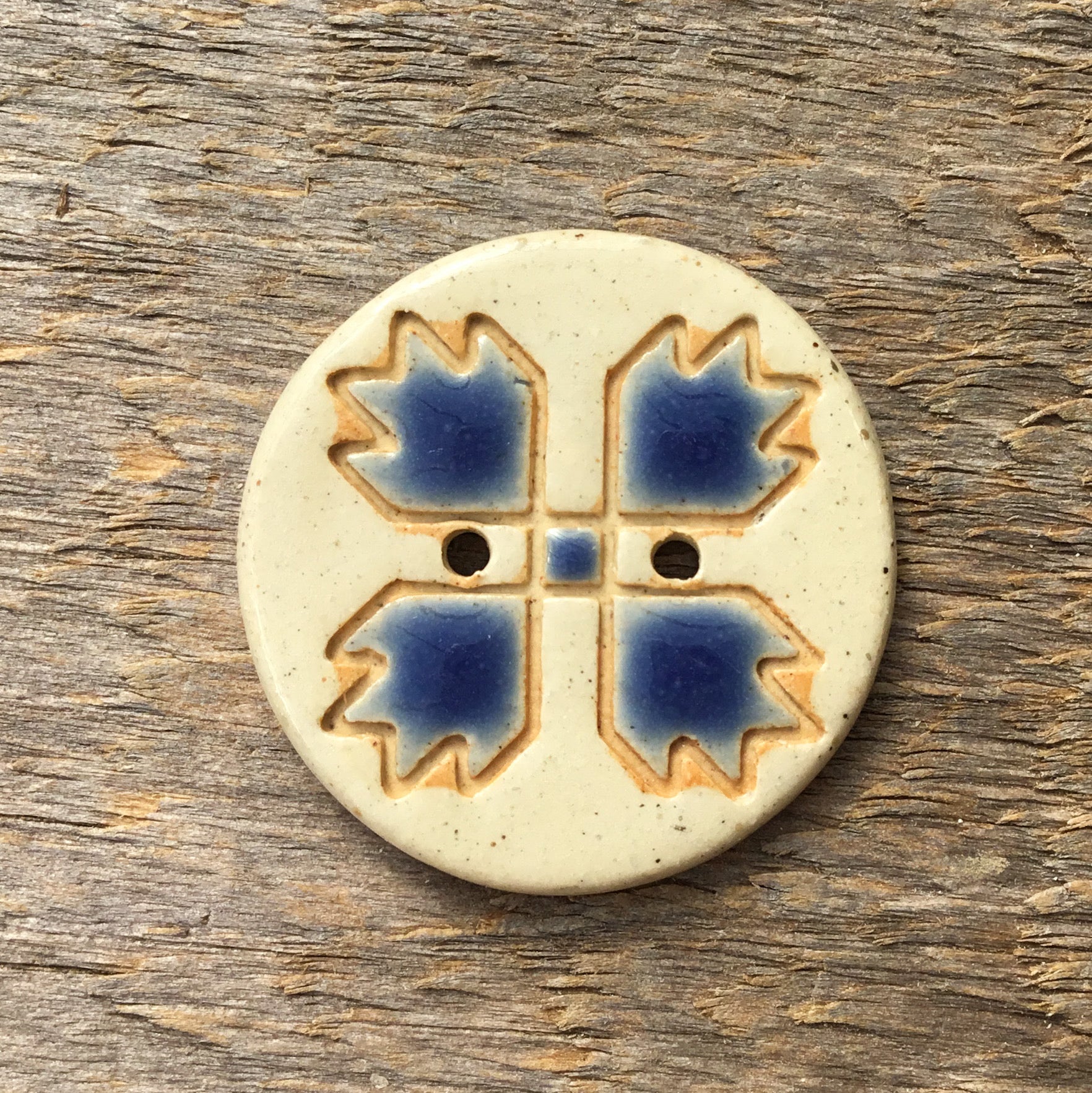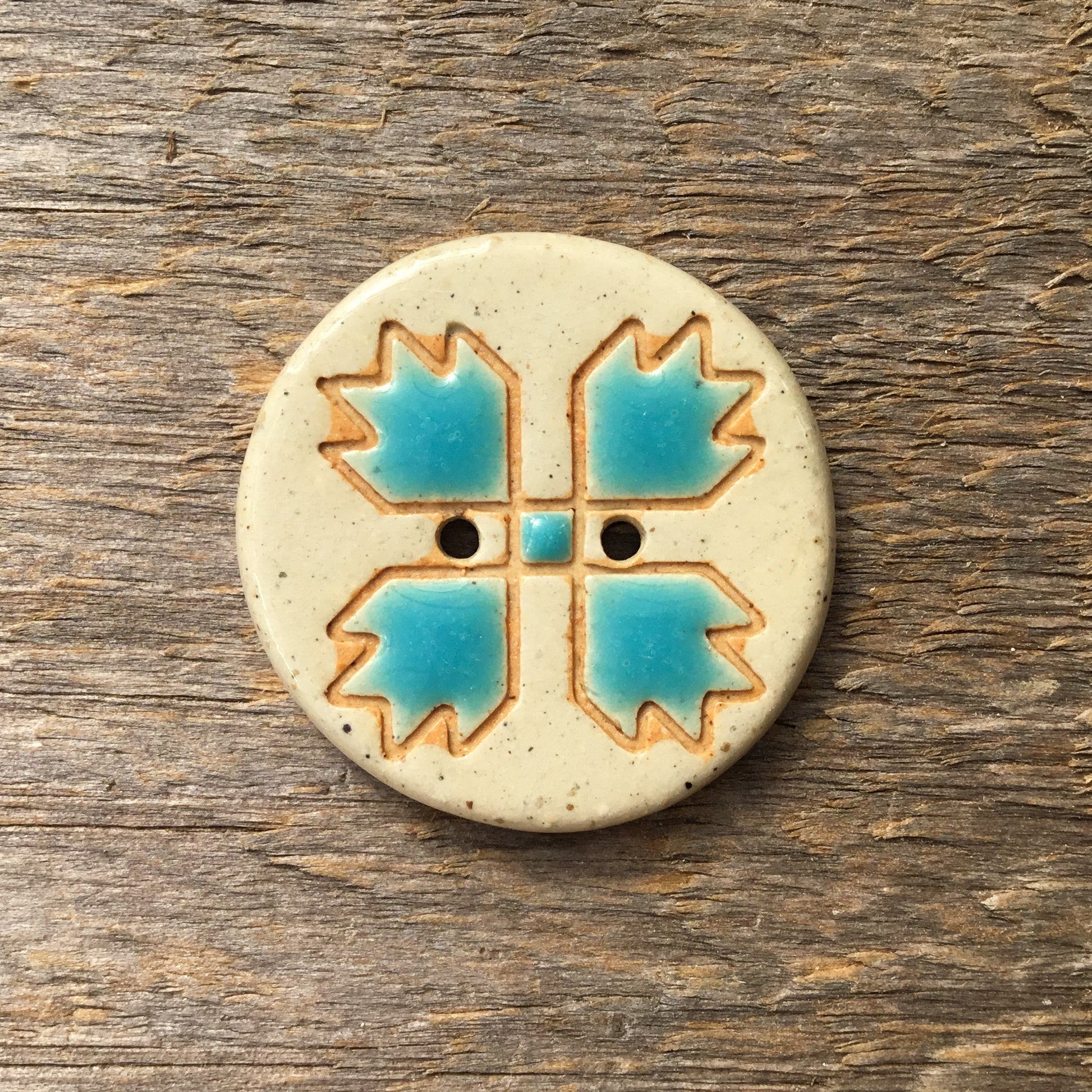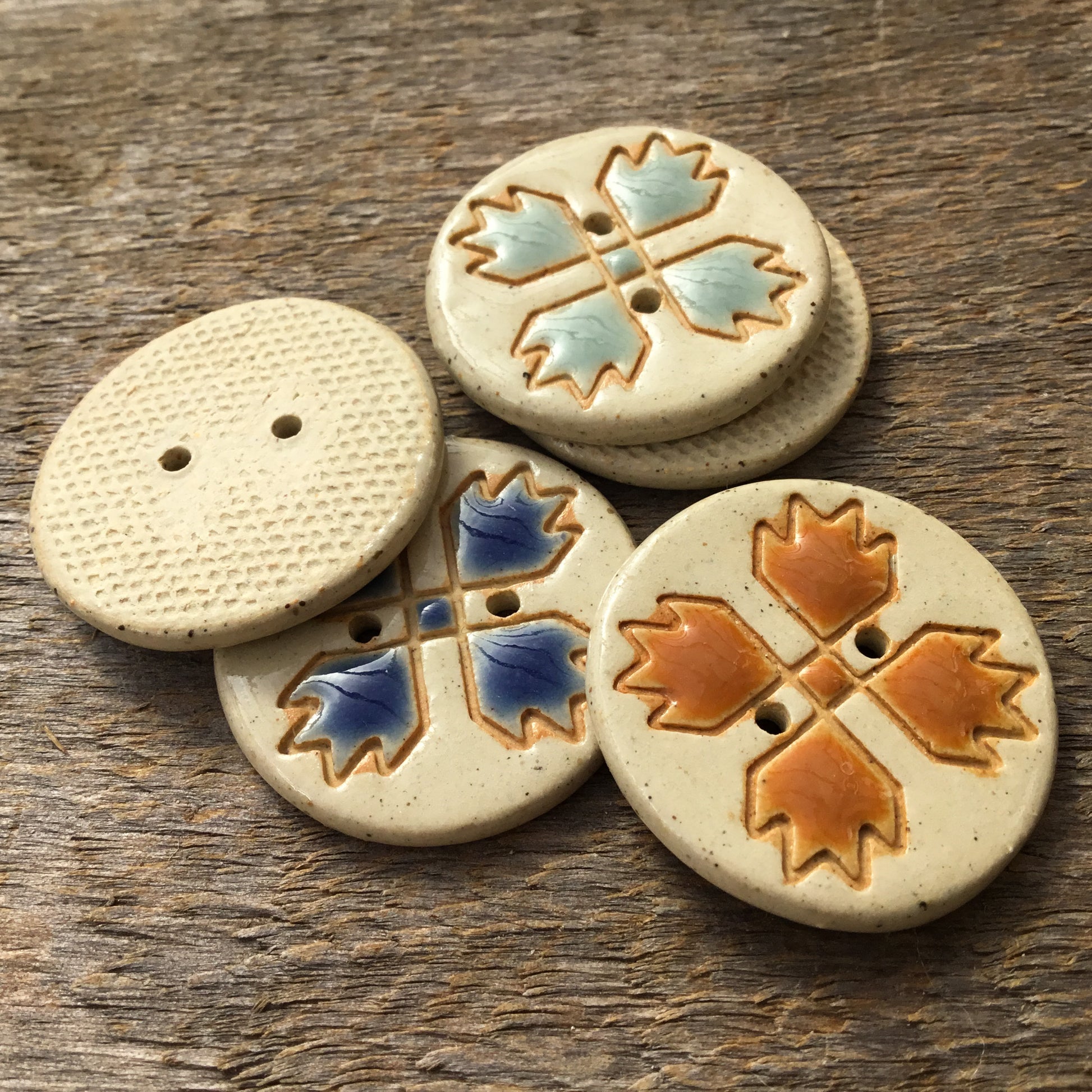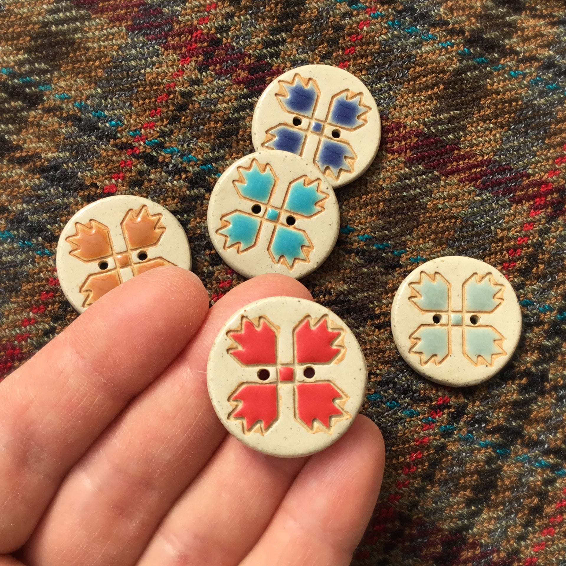 These original quilt block buttons are made from stoneware clay and carefully hand painted. The surface and sides have been painted with a clear glaze for a smooth finish and an earthy, rustic look. They’ll add a fun touch to any project!