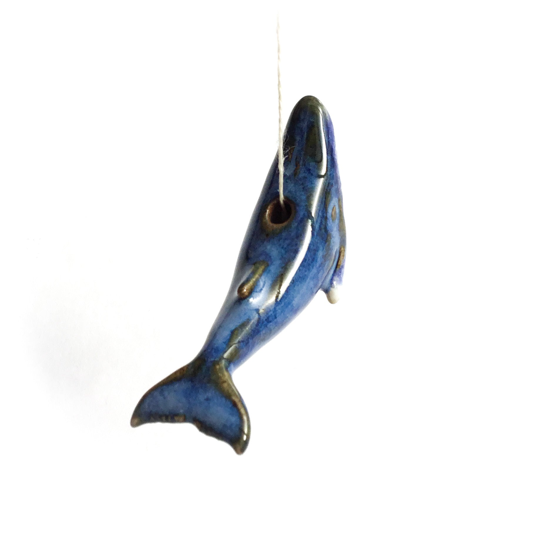 Stoneware Humpback Whale Bead - Hand Sculpted - 2-3/4" Long