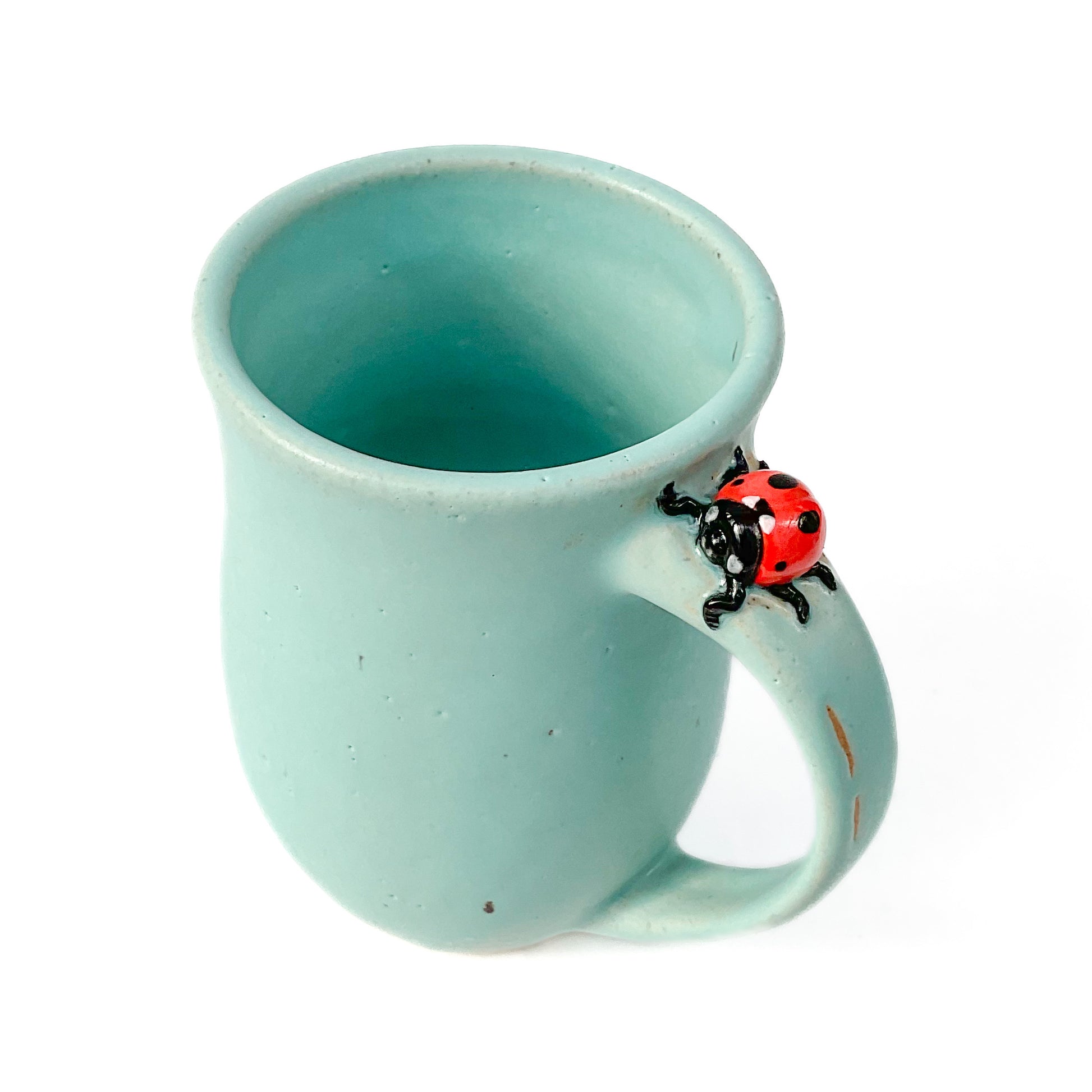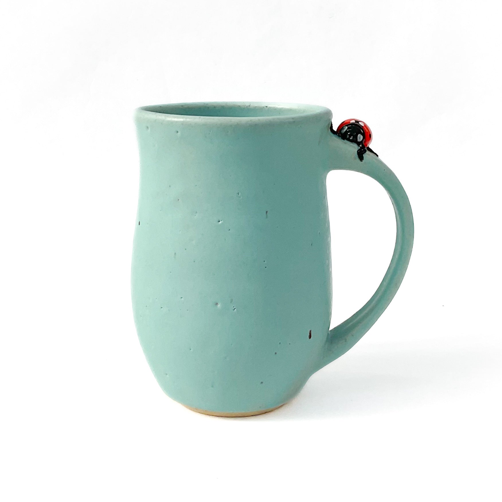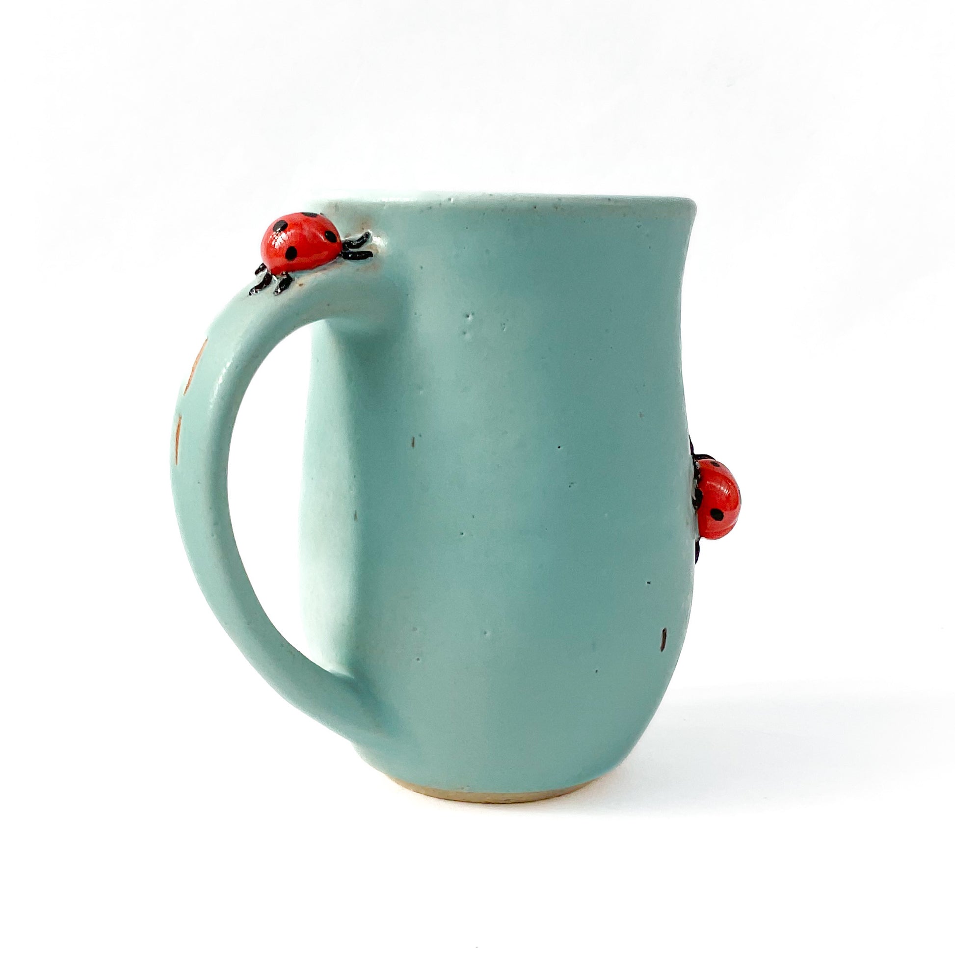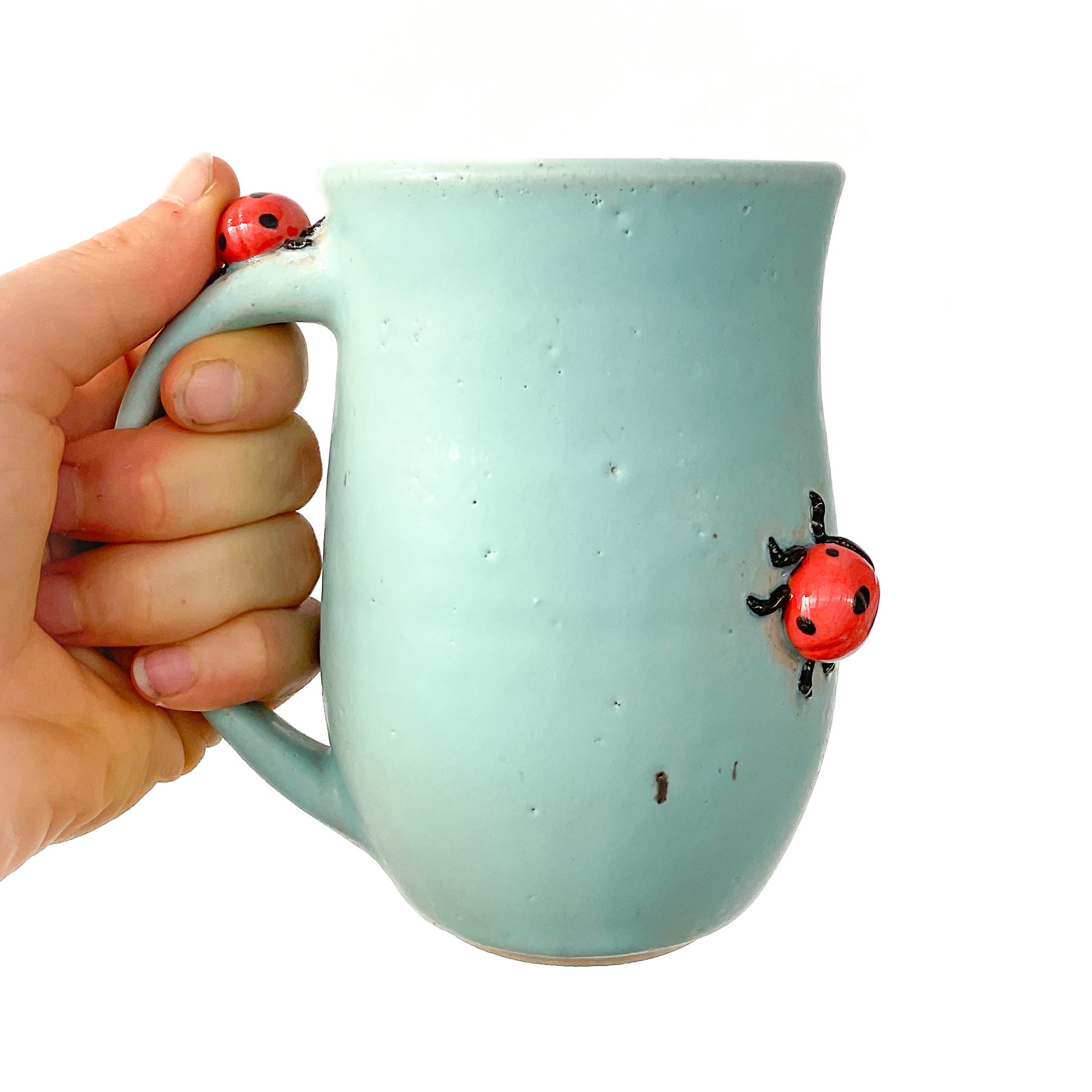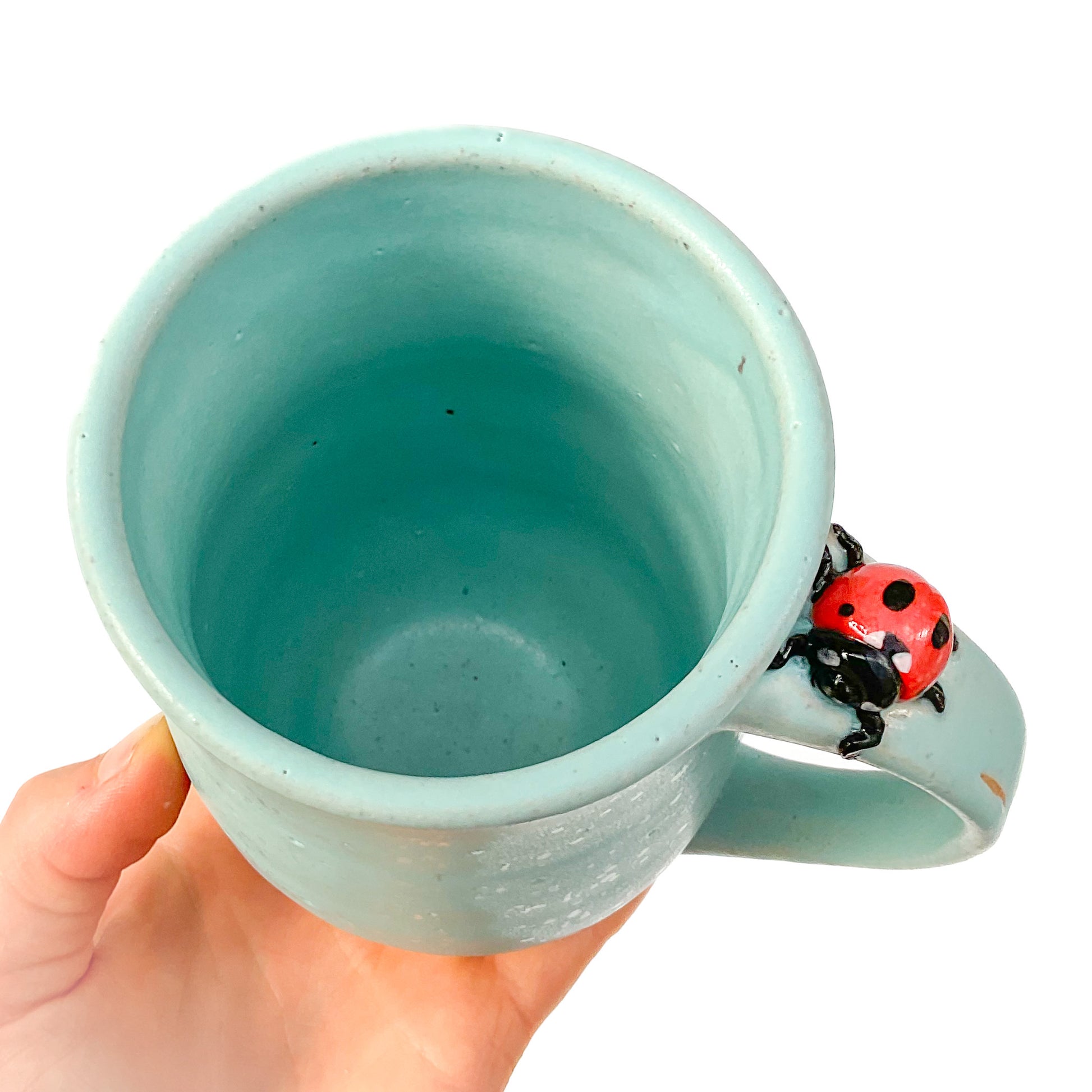 Stoneware Ladybug Mug - 15 ounce Ceramic Mug