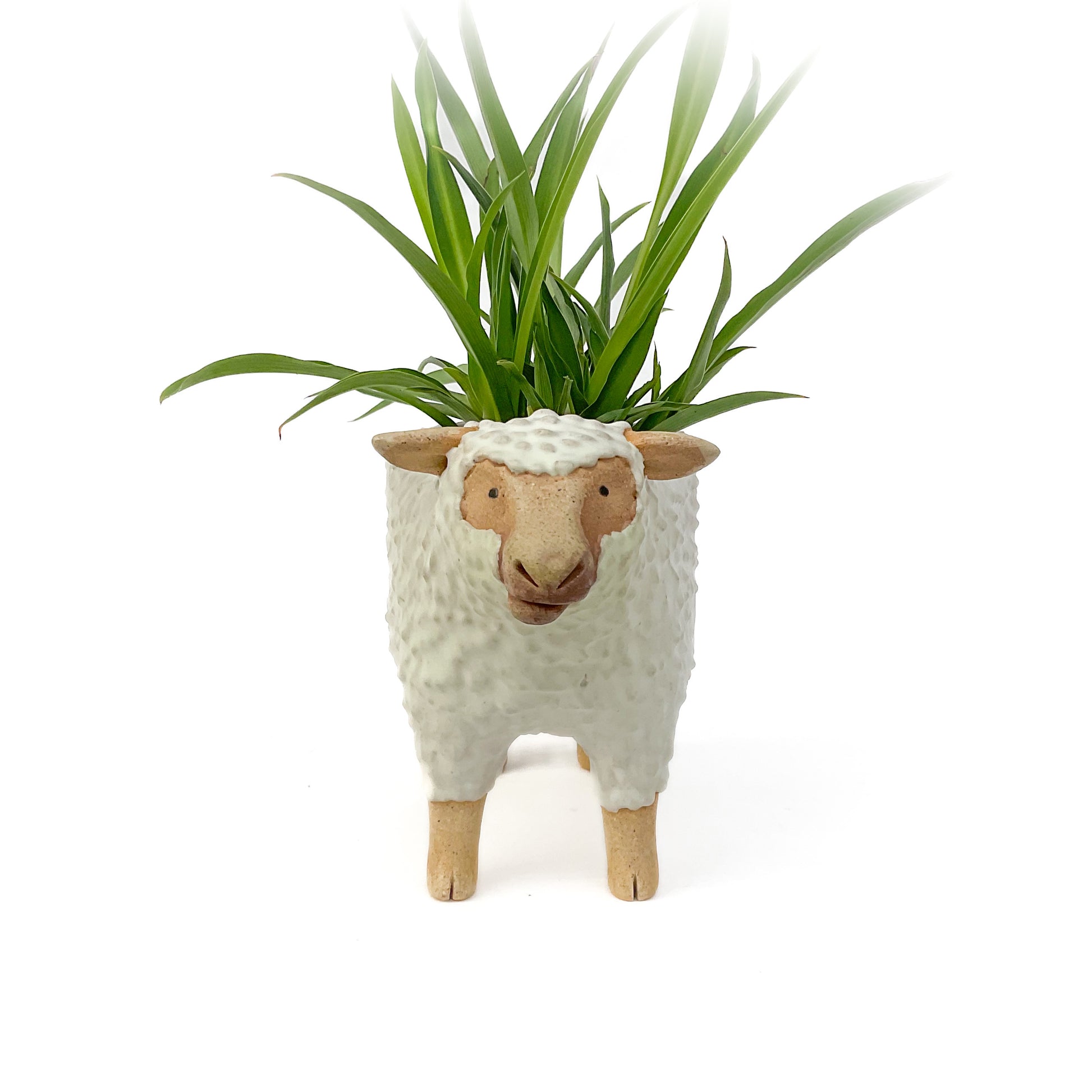 Stoneware Sheep Pot - Ceramic Sheep Planter