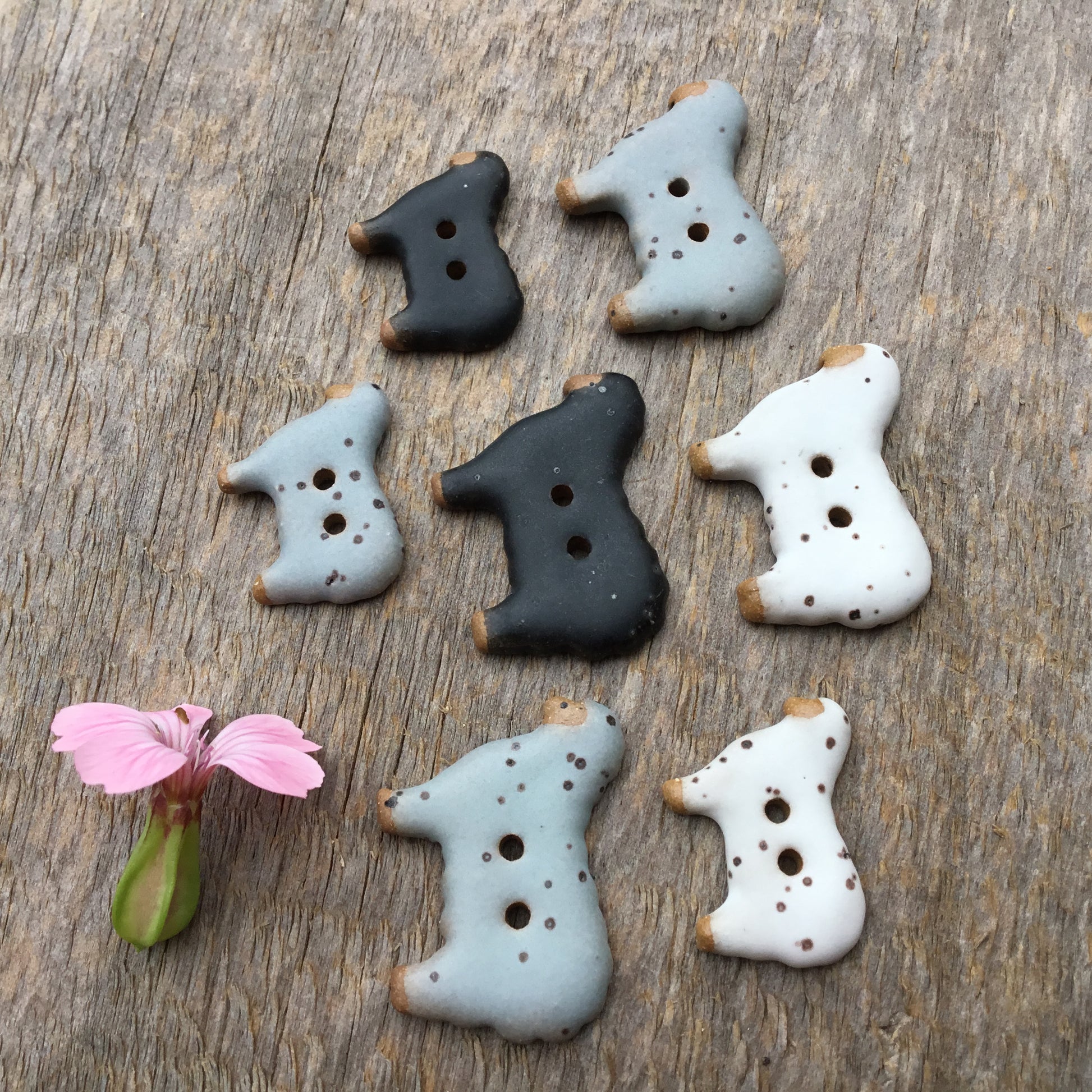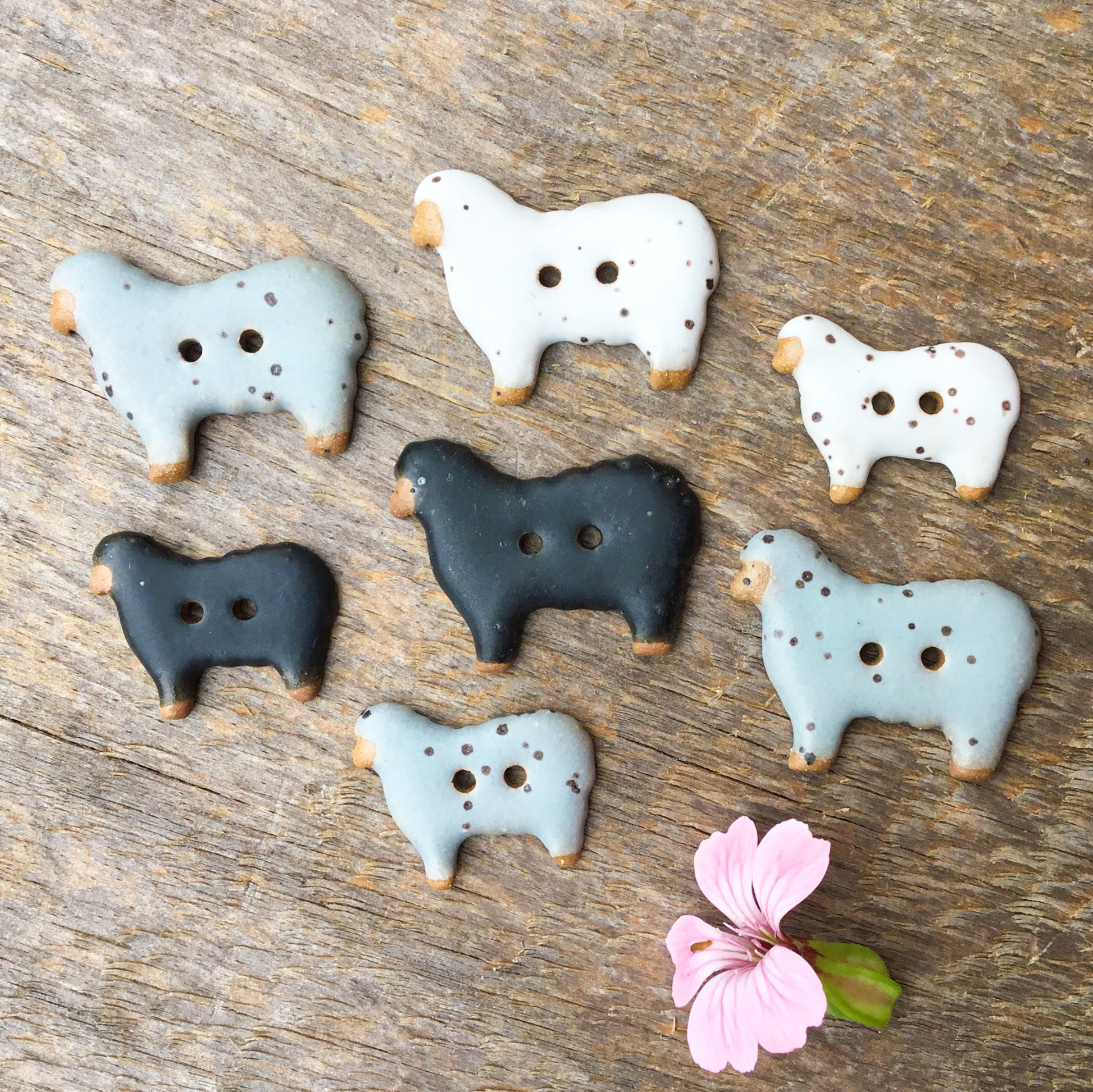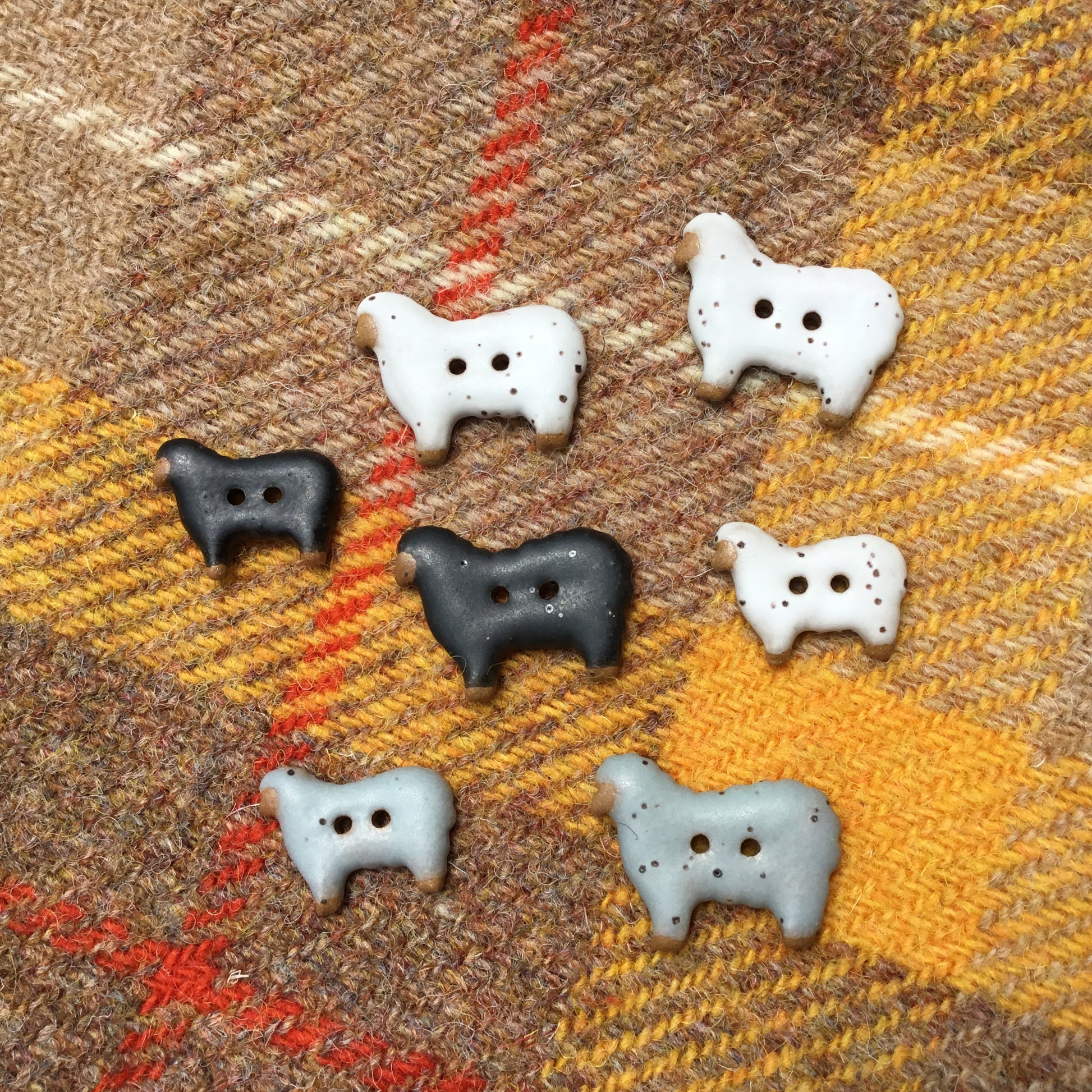 Perfect for the lover of sheep, these stoneware buttons have a satin matte glaze on a rustic brown clay body. They'd add a sweet addition to any project!