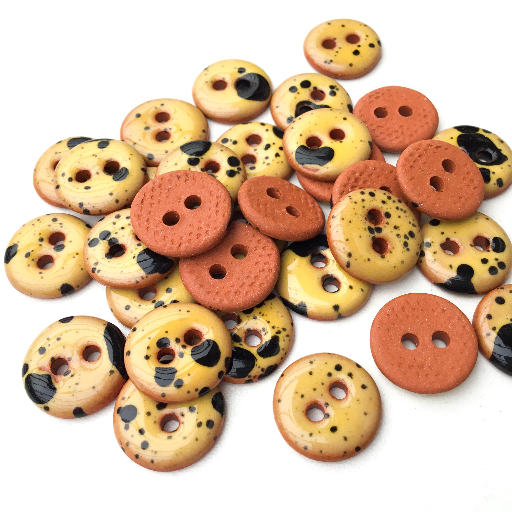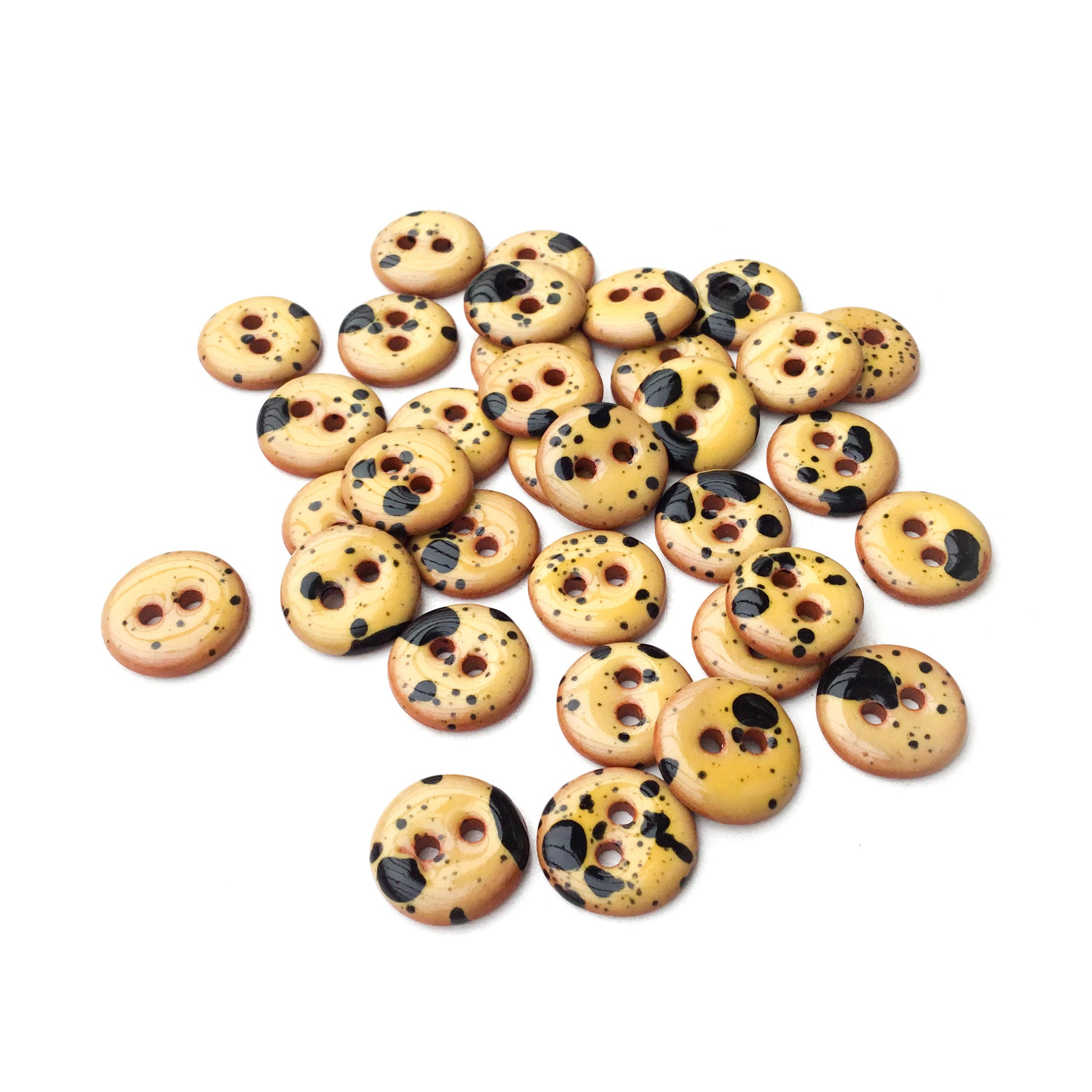 Yellow & Black Splatter Paint Ceramic Buttons - 9/16"