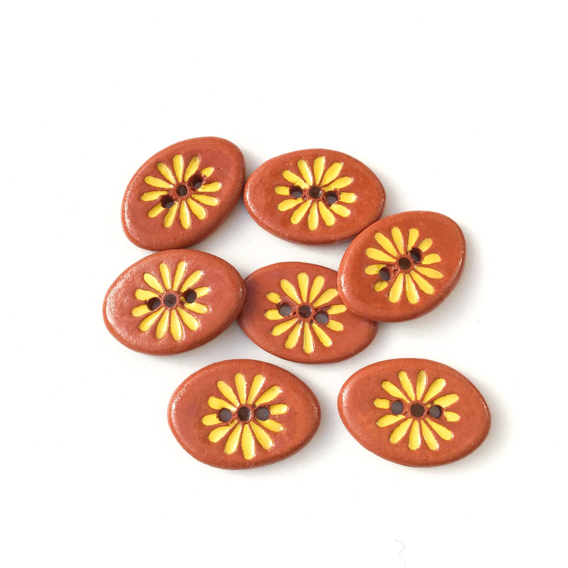 Yellow Daisy Button on Red Clay 5/8" x 7/8"