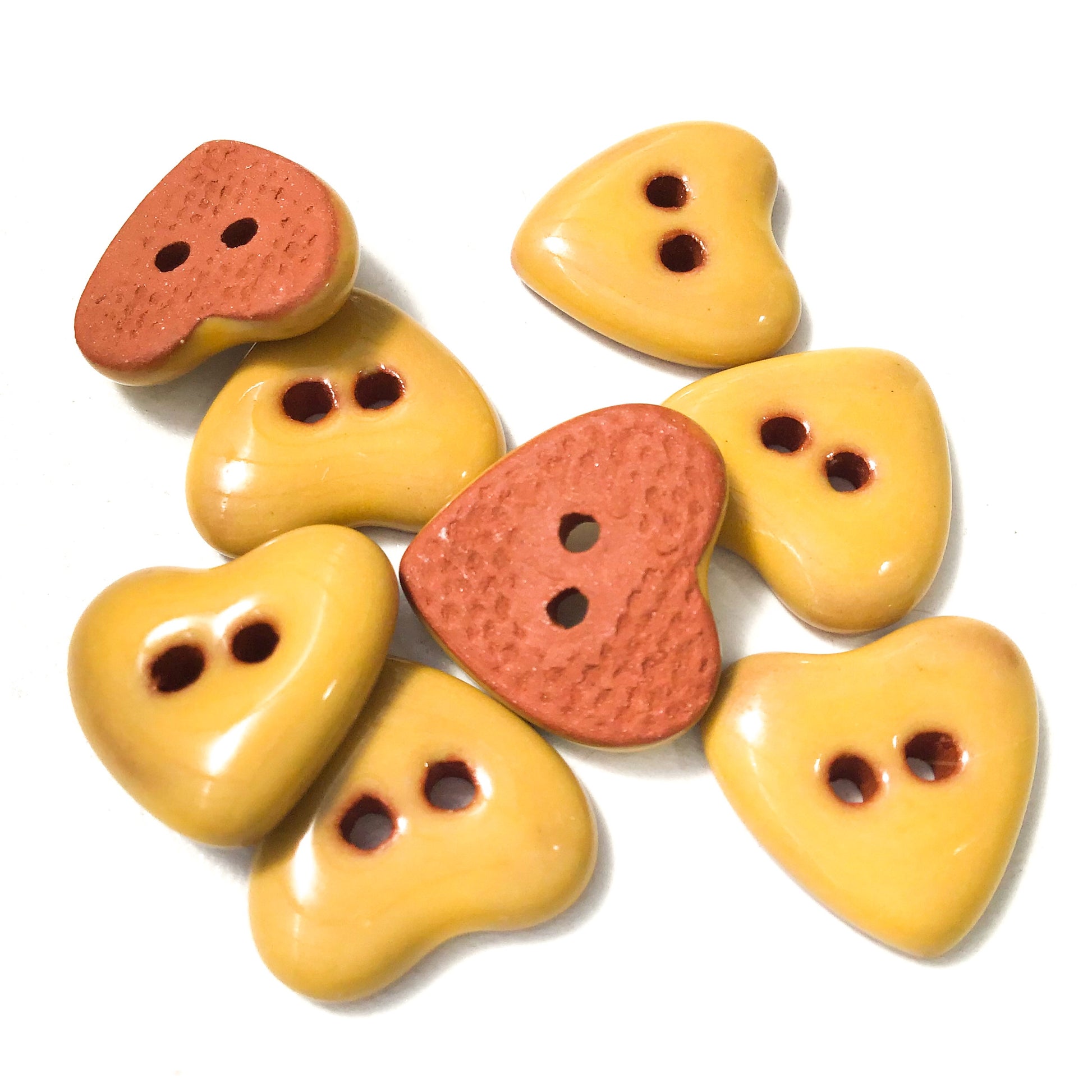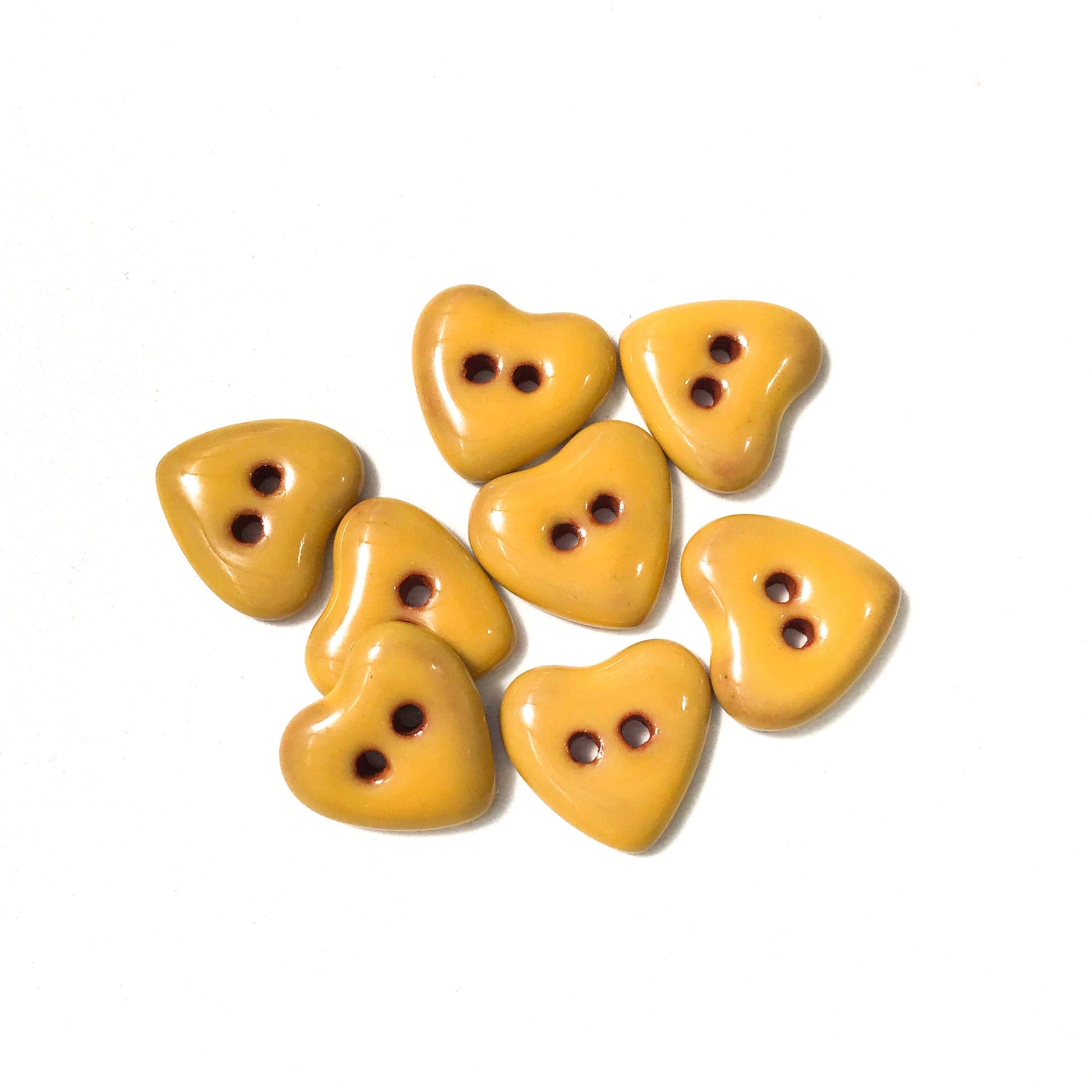 These ceramic heart buttons are simple and sweet in a pretty shade of yellow. The edges have been softly rounded giving them a nice feel in the hand. They'd make a beautiful addition to your handwork!