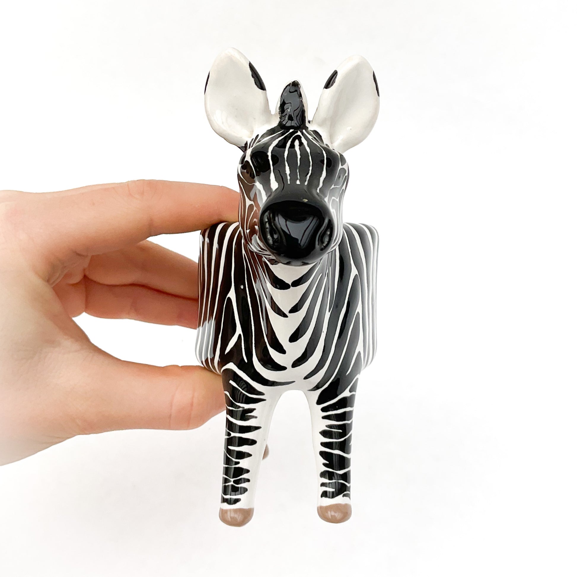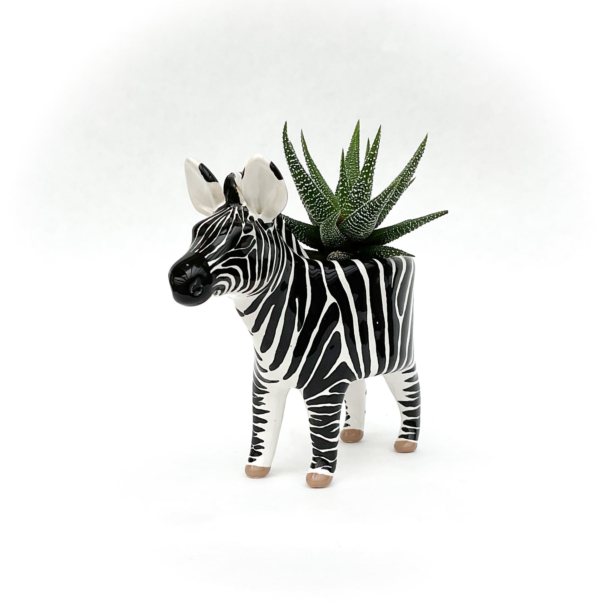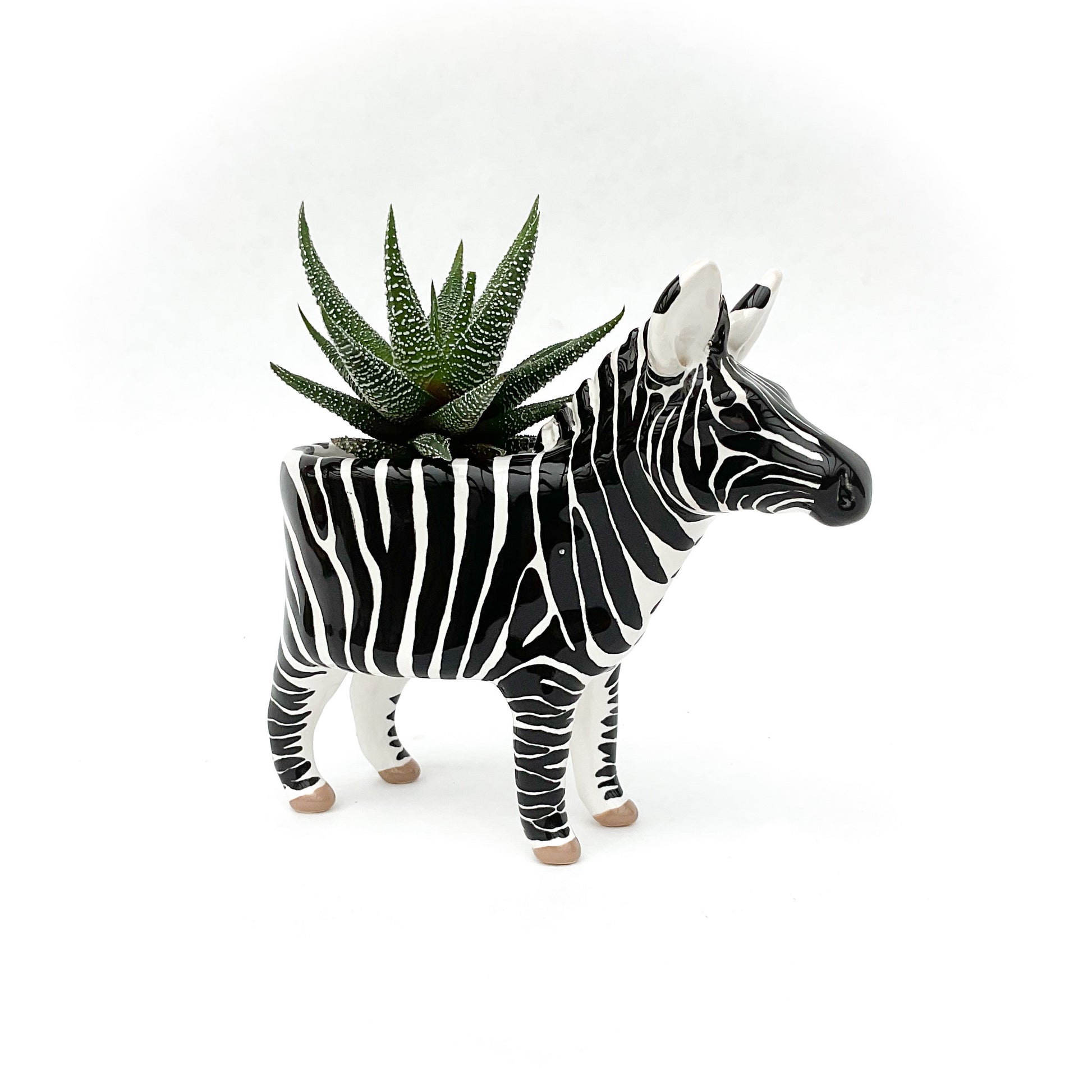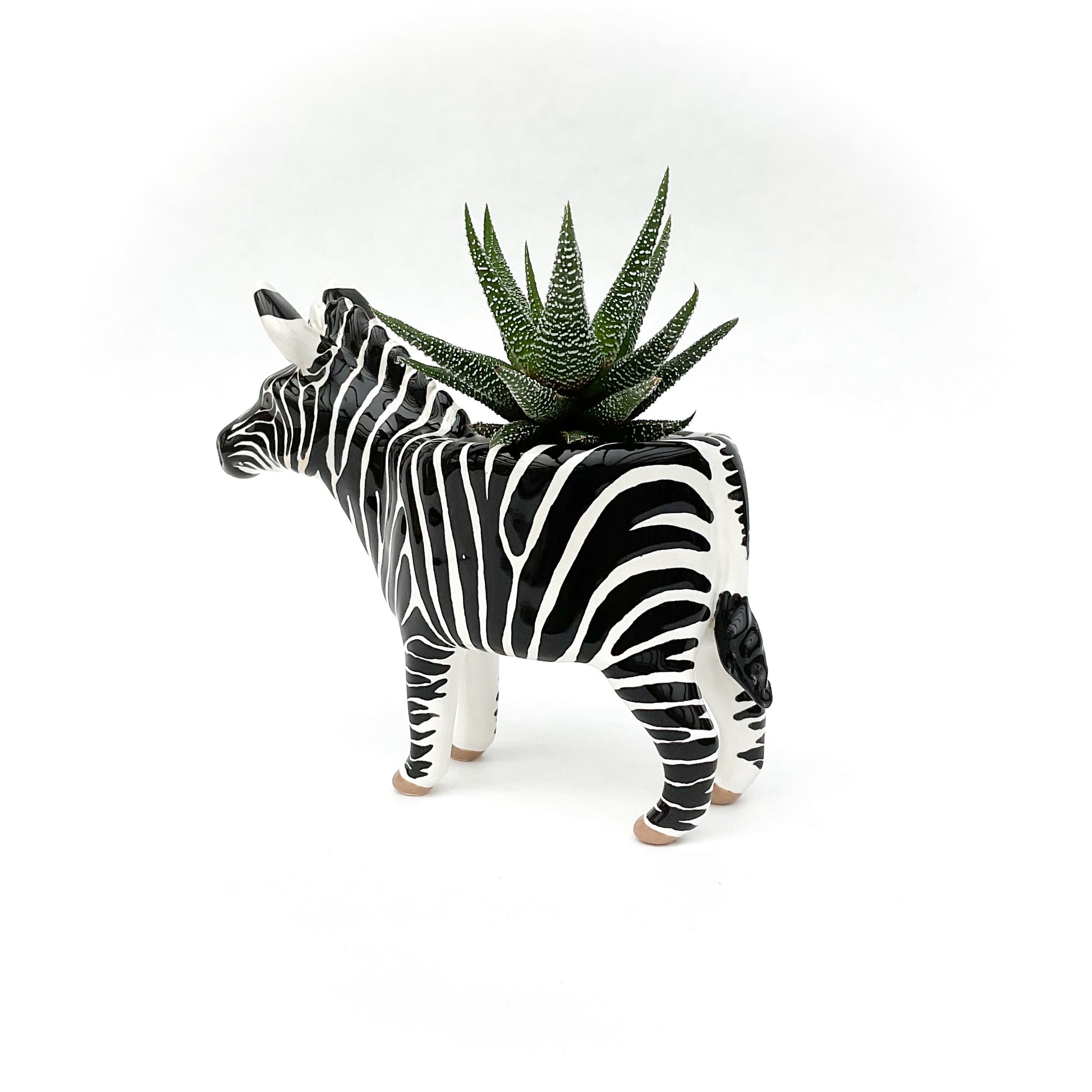 A ceramic zebra planter to pot up your favorite succulent or small cactus.