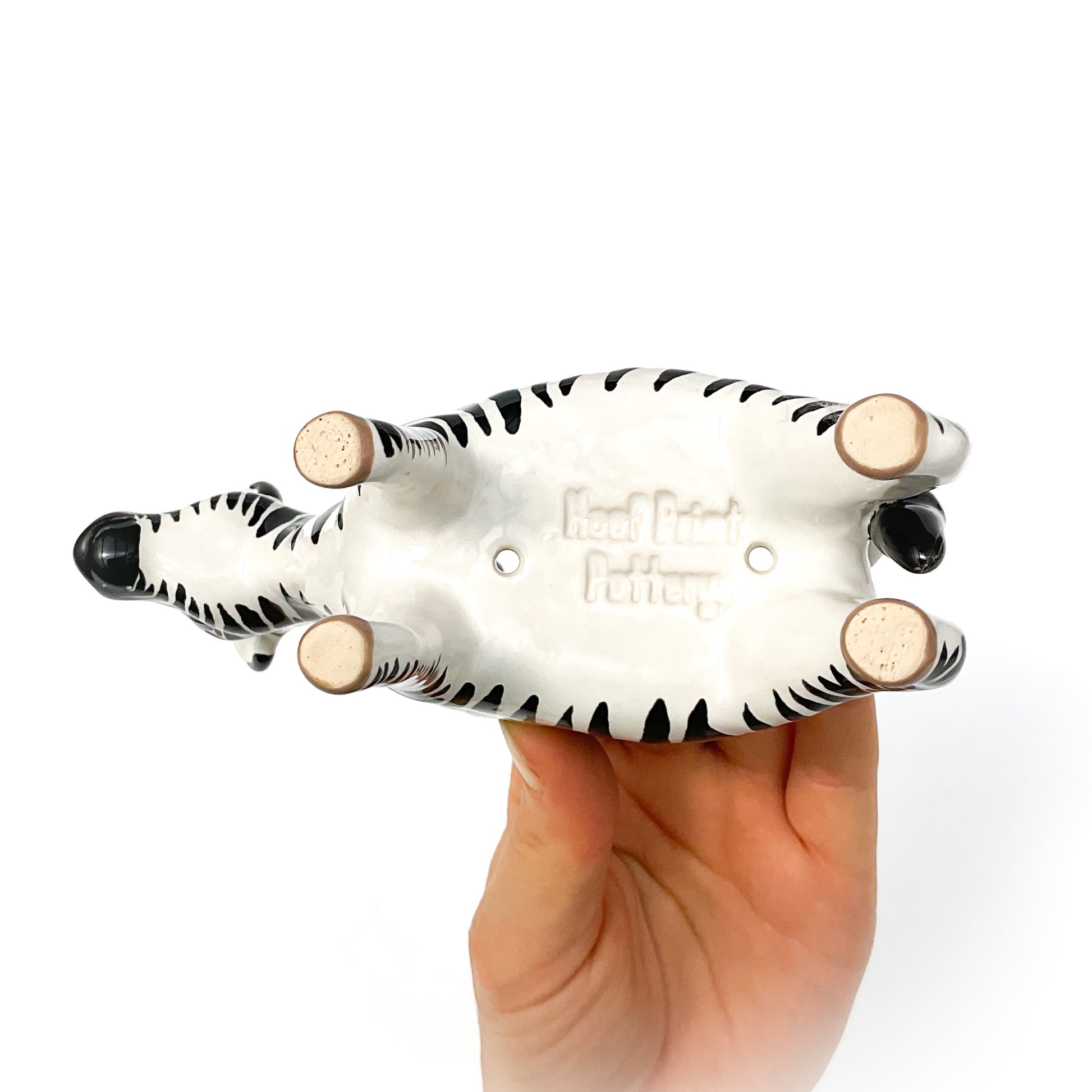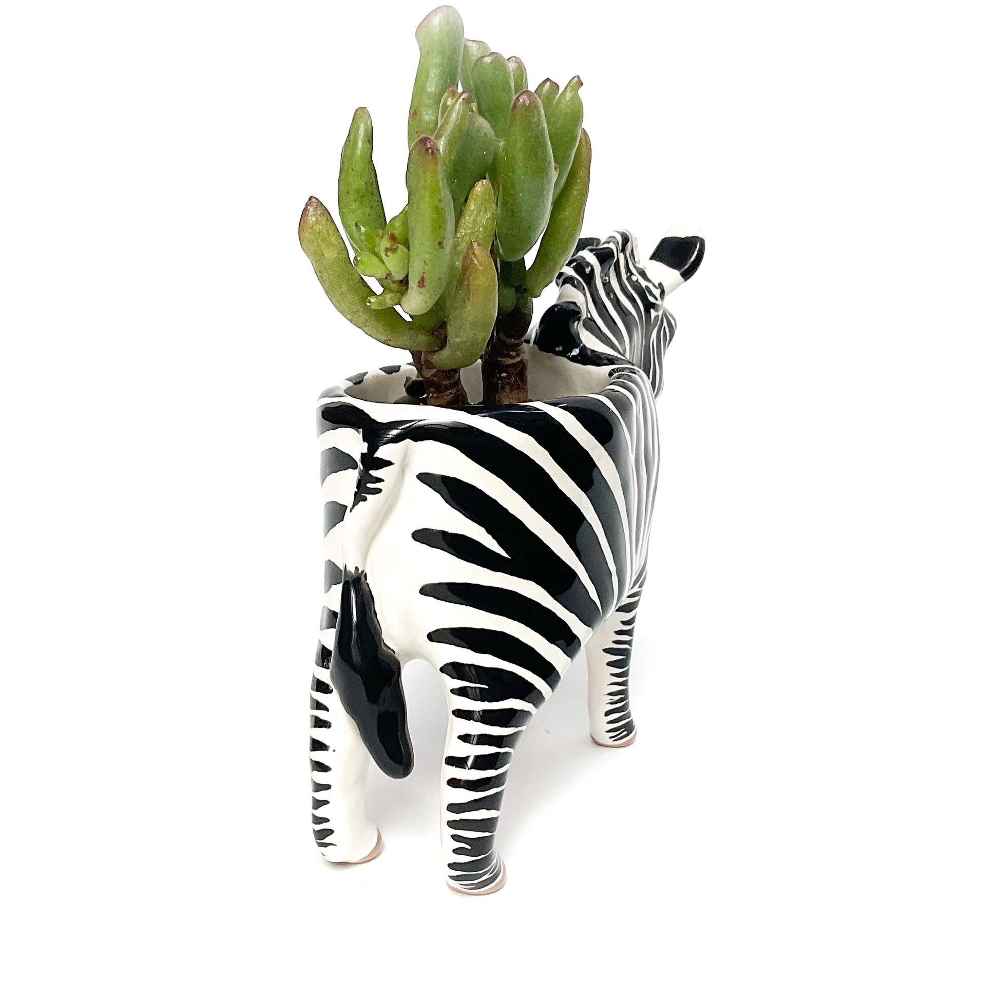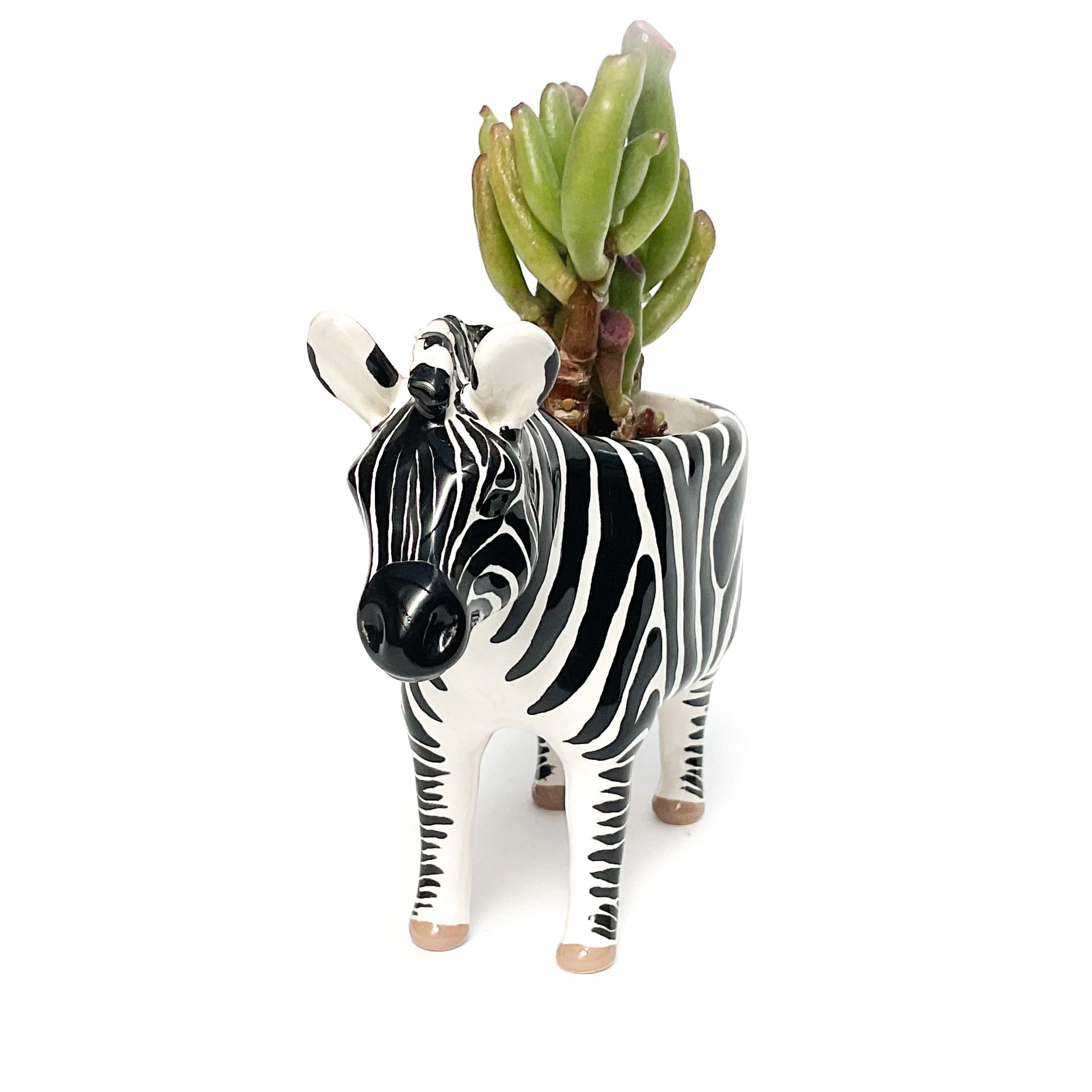 A ceramic zebra planter to pot up your favorite succulent or small cactus.