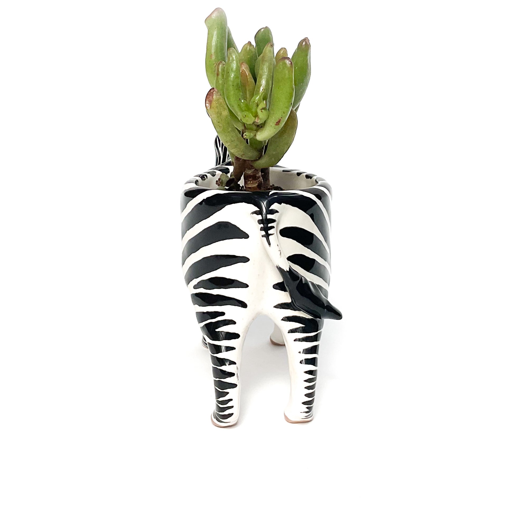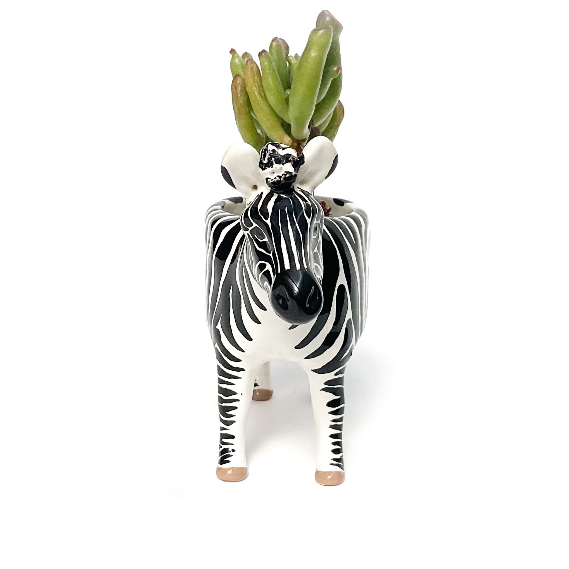 A ceramic zebra planter to pot up your favorite succulent or small cactus.